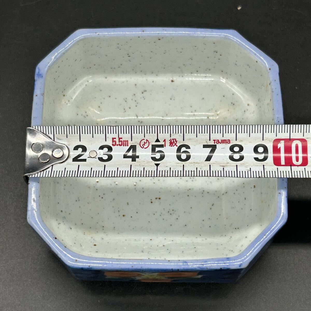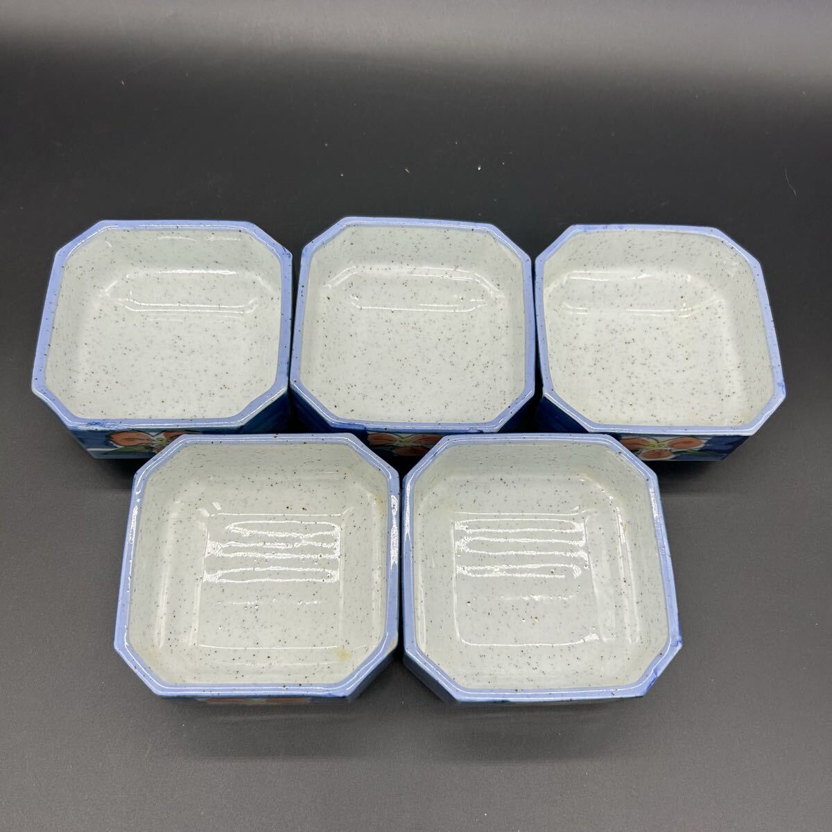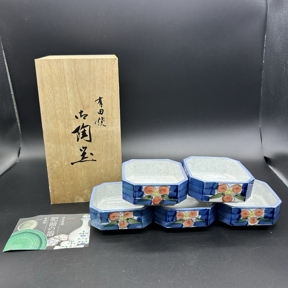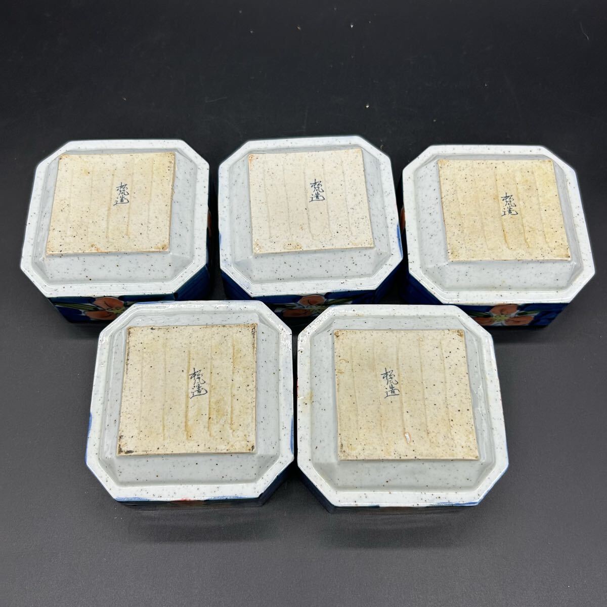 有田焼 松風造 京赤絵 青色 花柄 八角形器 小鉢 陶器 エ22