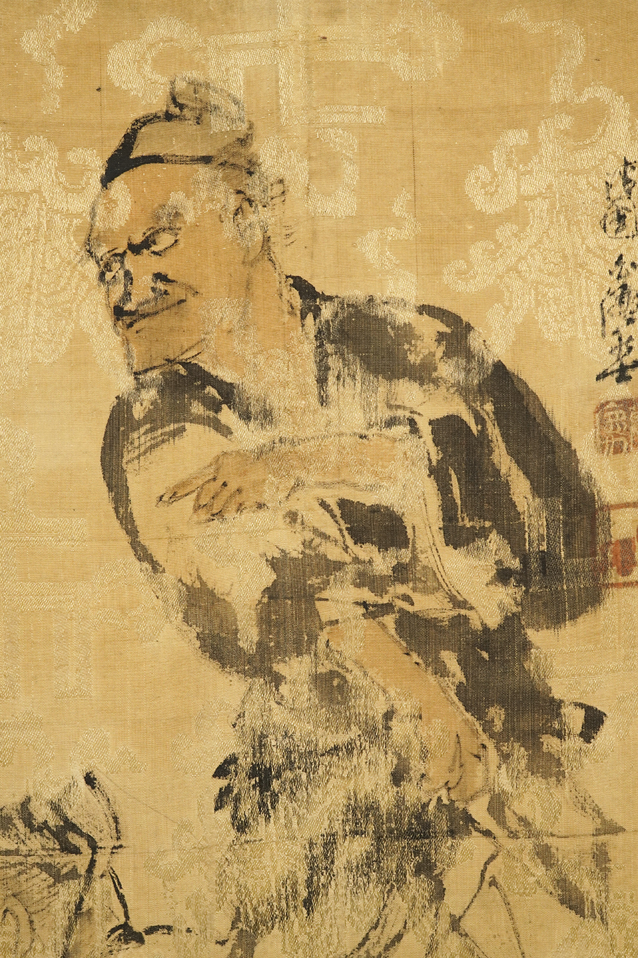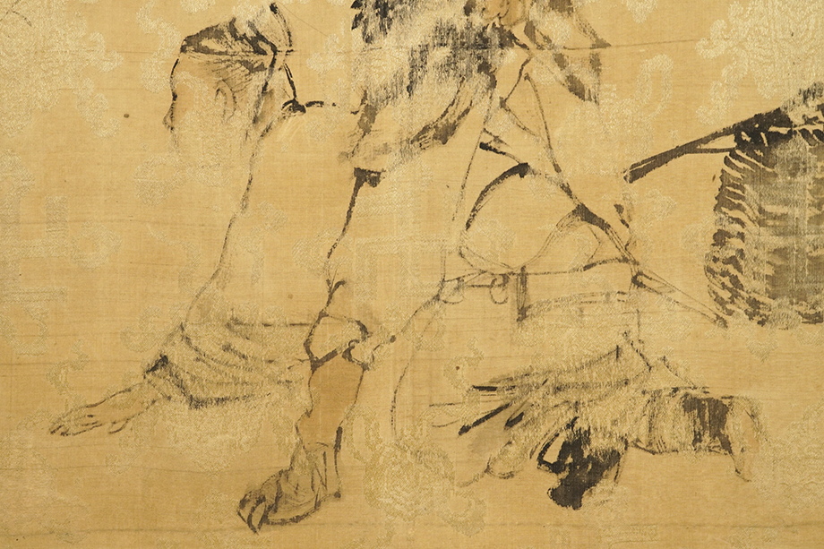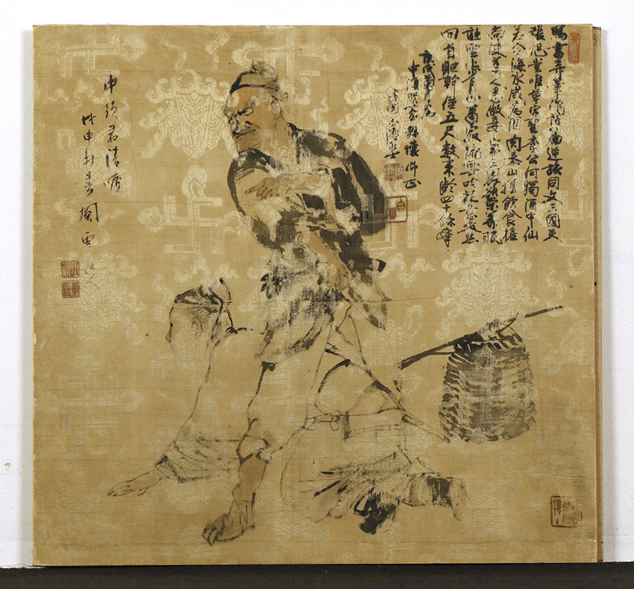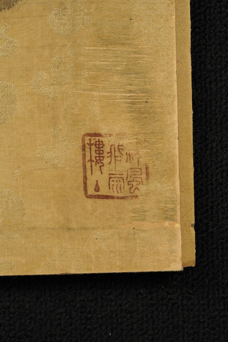 綸子水墨淡彩 明治41年戊申(1908)関雪24歳 状態…本紙少傷ミ 【印刷ではありません】 【真作】 橋本関雪 日本画家。兵庫神戸生。明石藩儒橋本海関の長子。竹内栖鳳に師事。四条派に南画を加味した新南画を大成する。詩書歌にも秀でる。朝日賞受賞。帝展審査員・帝室技芸員・帝国美術院会員。フランス政府よりシュバリエ・ド・レジョン・ド・ヌール勲章を授与される。昭和20年(1945)歿、61歳。 |
