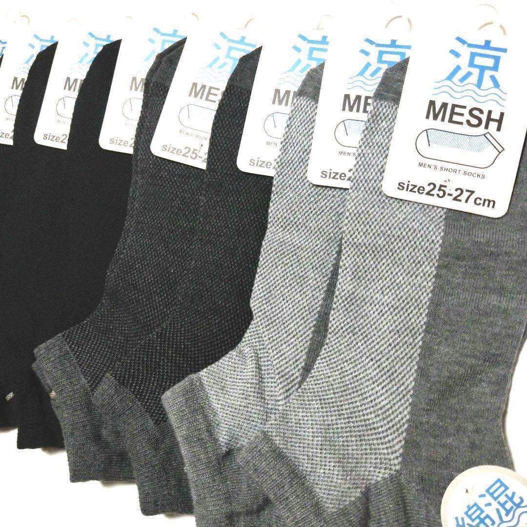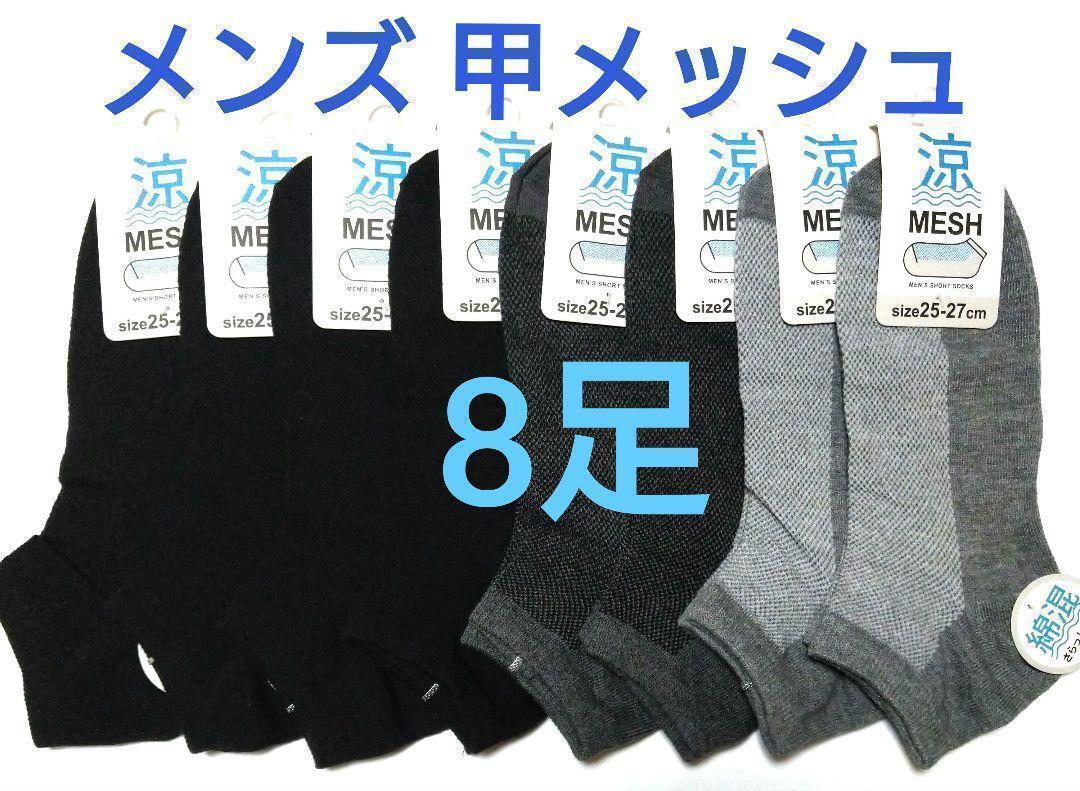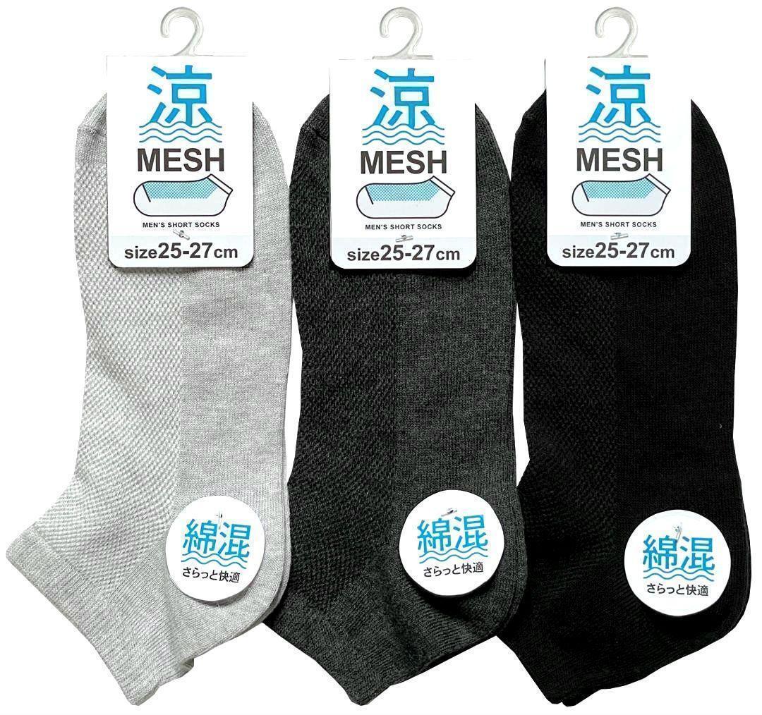無地メンズ綿混ショートソックス ★甲メッシュタイプ★くるぶし丈8足セット