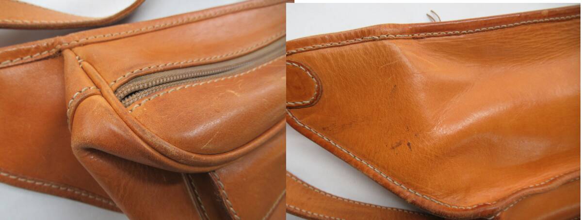 外側:擦れ、汚れ、変色、金具キズ・メッキ剥がれ、型崩れ、ペン跡、小さいシミ