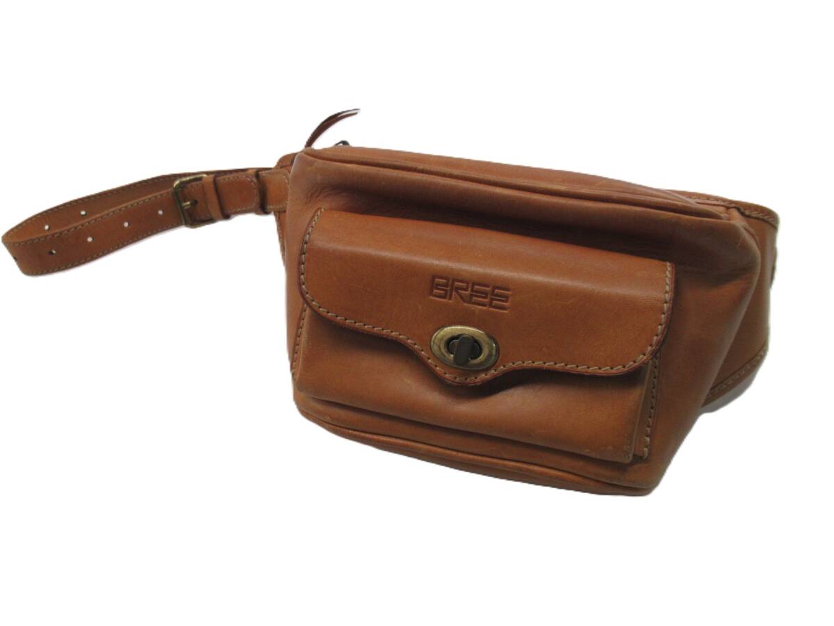 ☆【B送900円】2193 BREE ブリー レザーウエストポーチ ボディバッグ キャメル ゴールド金具 ロゴ型押し ヌメ革
