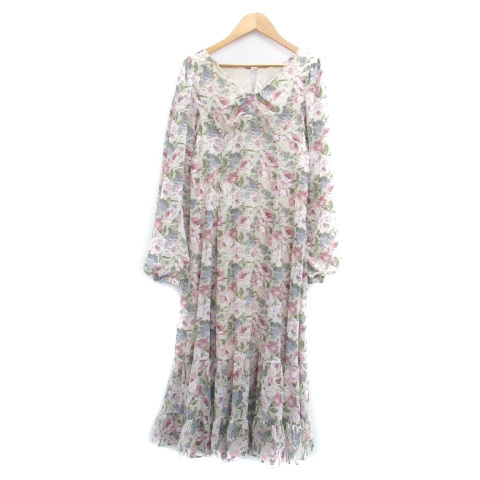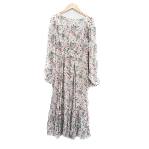 ナイスクラップ NICE CLAUP ワンピース Vネック 長袖 ロング丈 花柄 F マルチカラー ピンク /HO41 レディース