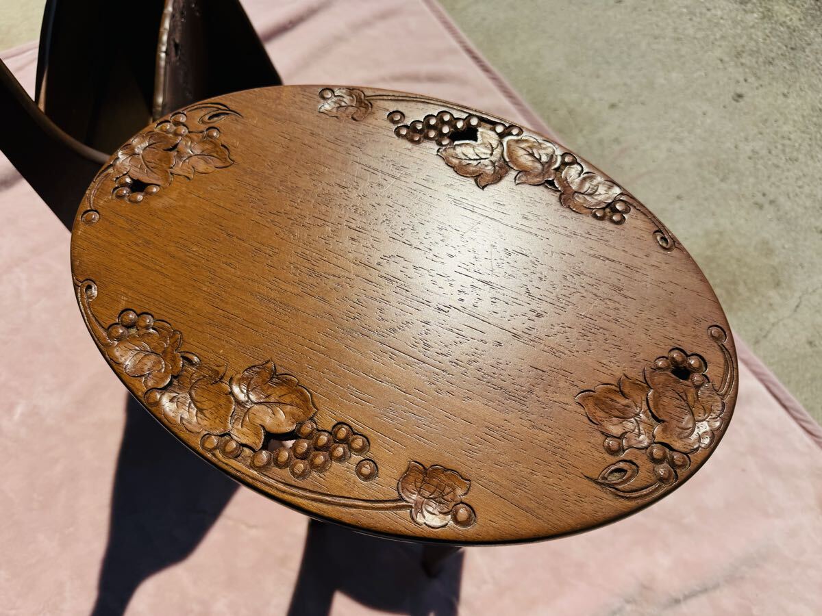 スマートなフォルムが美しい花台です。ソファサイドやお部屋のコーナーなど、ちょっとしたスペースを彩るディスプレイ台としてもご活用いただけます。高級家具材とされている細かい木目が美しいマホガニー無垢材を使用。豊穣をあらわす葡萄柄の彫刻は熟練の職人が手彫りし、組み立ても一つずつ丁寧に行って仕上げられています。