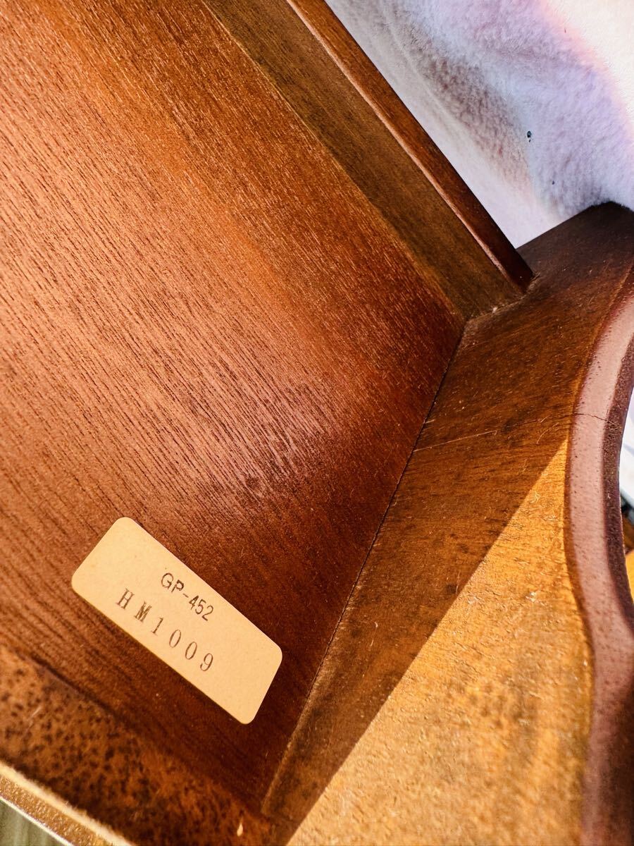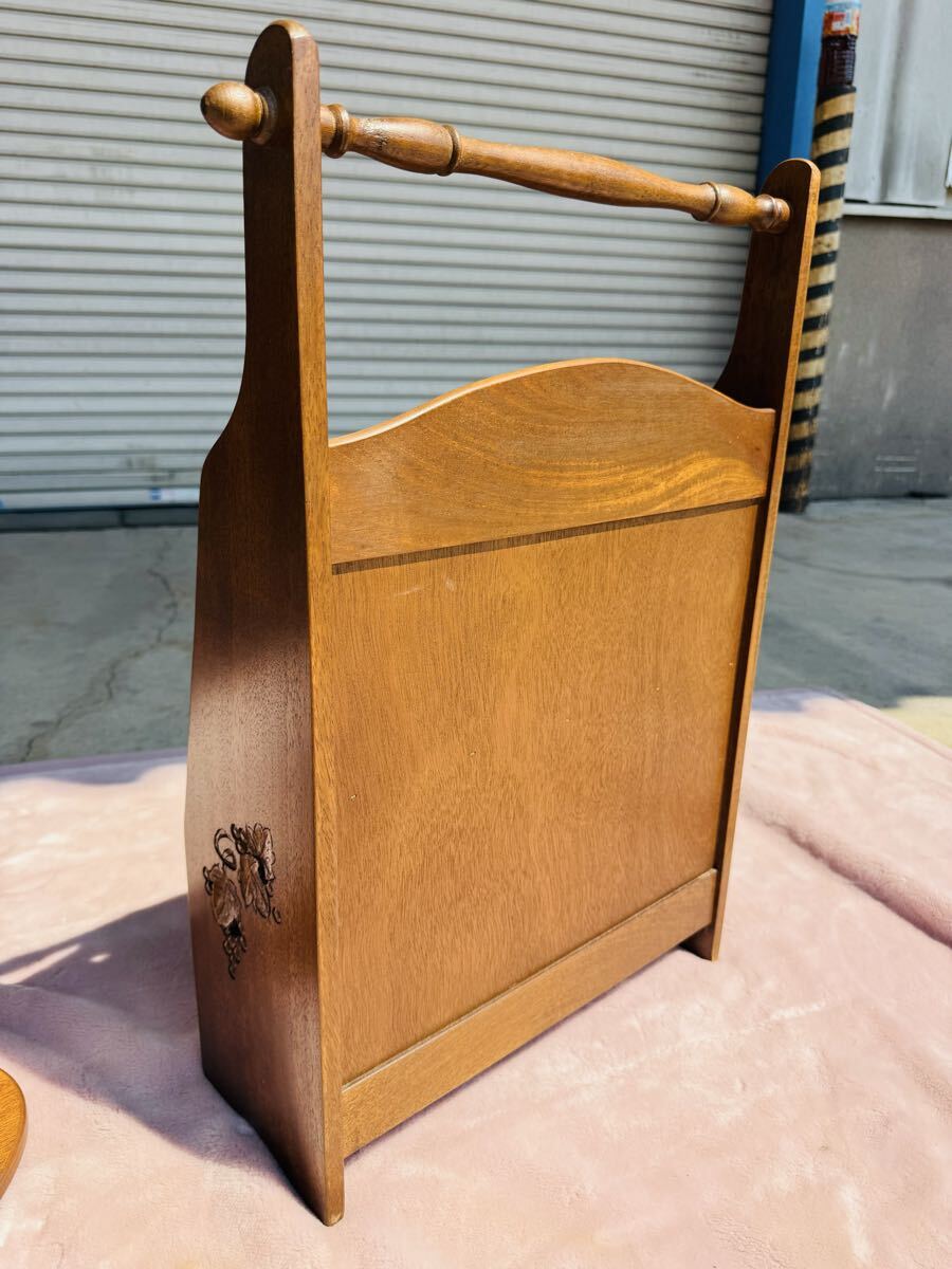 前面とサイドの彫刻がクラシカルなマガジンラック。高級家具材とされている細かい木目が美しいマホガニー無垢材を使用しています。取っ手が付いているので気軽に持ち運んでご使用いただくことが可能です。豊穣をあらわす葡萄柄は熟練の職人が手彫りし、組み立ても一つずつ丁寧に行って仕上げられています。