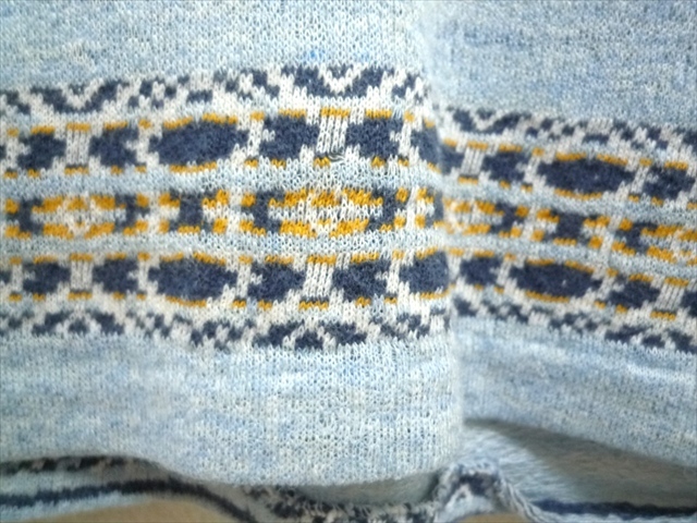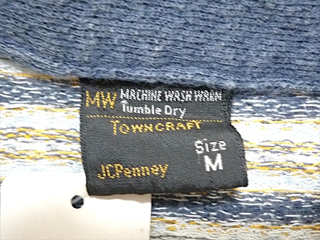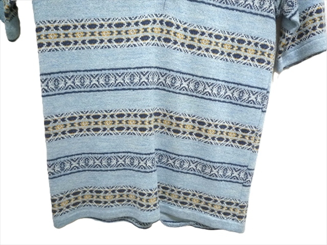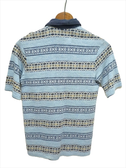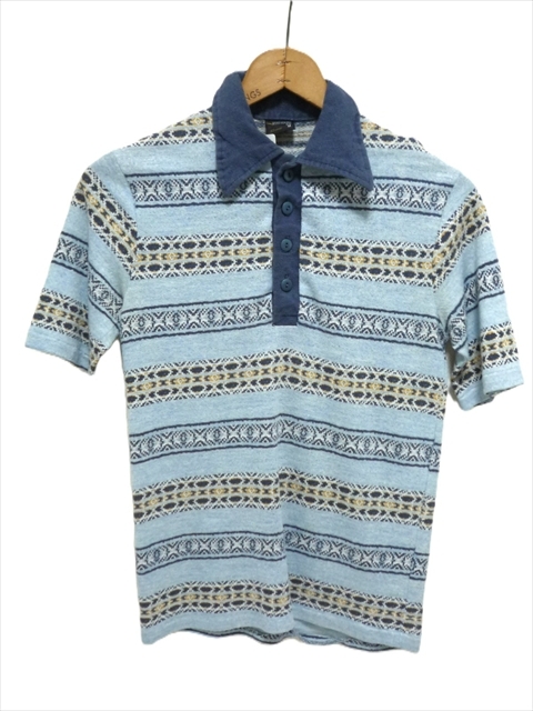 70’s ビンテージ TOWNCRAFT タウンクラフト JCペニー 半袖 ポロシャツ 水色×紺×黄 幾何学模様 ボーダー柄 M 男女兼古着