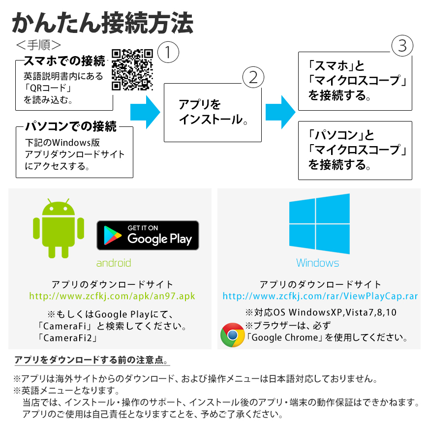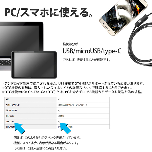 ■OTG対応のAndroidタブレット/スマートフォンとWindowsパソコンに接続して使用するUSBマイクロボアスコープ