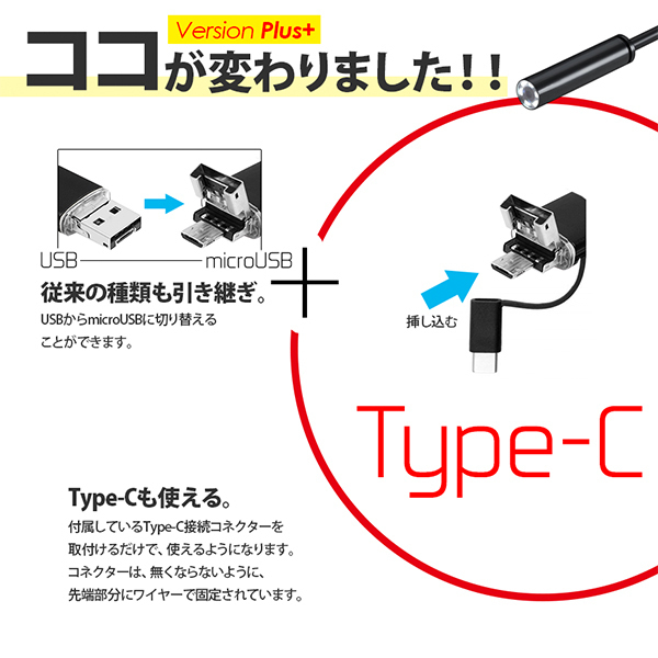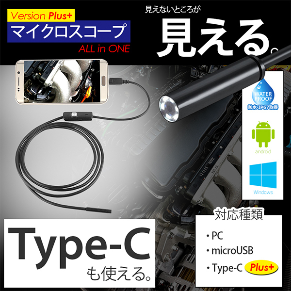 ■Type-C マイクロスコープ ファイバースコープ 2m カメラ 3in1 USB microUSB LEDライト 防水 直径5.5mm android Windows 両対応 送料無料■