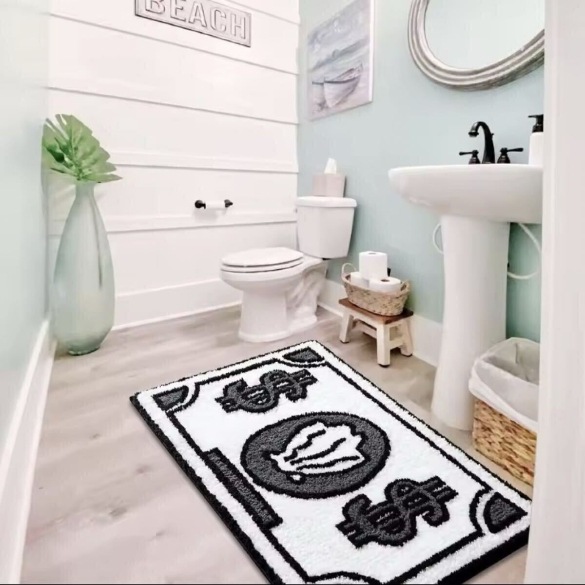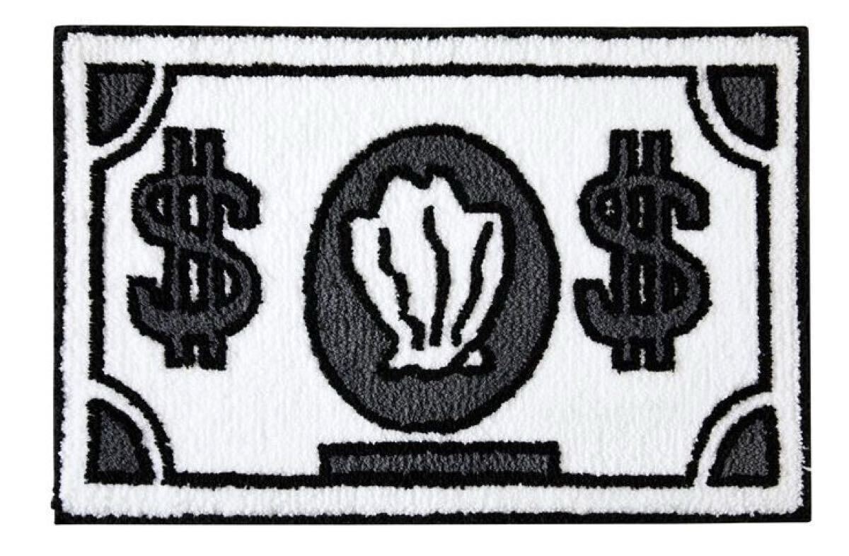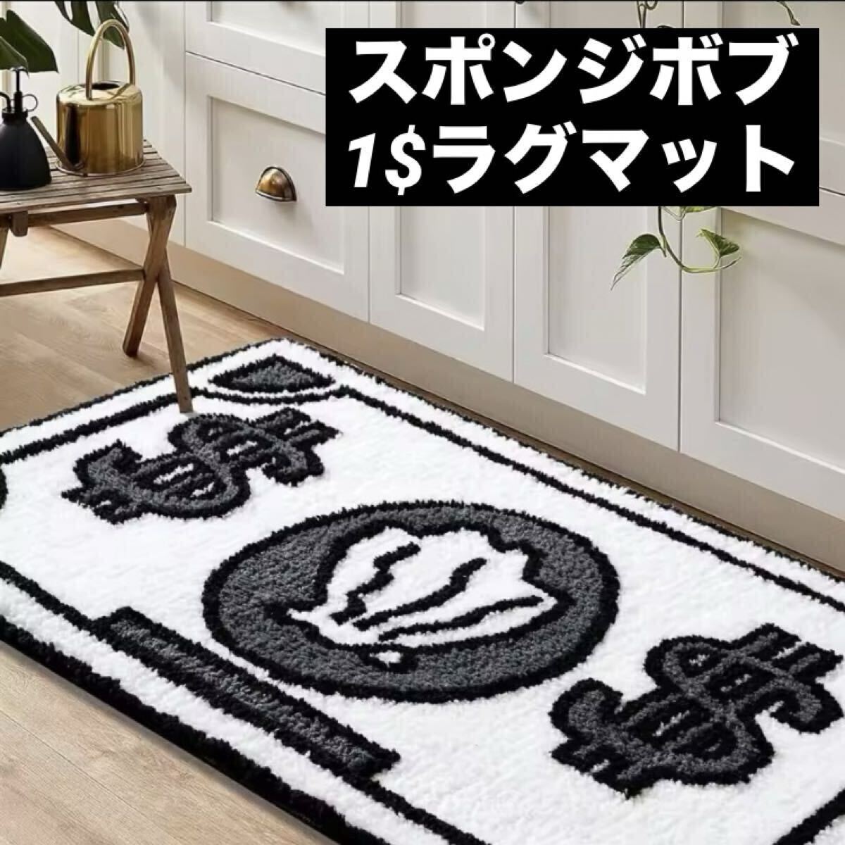 スポンジボブに出てくるカーニさんが大切に飾っている、初めて稼いだ1ドル札を模したユニークで肌触りの良いラグです。