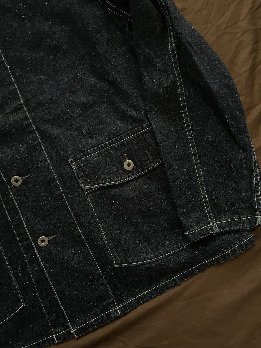 月桂樹ボタンやコントラクトタグ、フラップポケット裏のオリーブヘリンボーン地、袖口や裾口のチェーンステッチ、肩部のヴィンテージ加工、ユニオンチケット等の細かいディテールも最高です。
