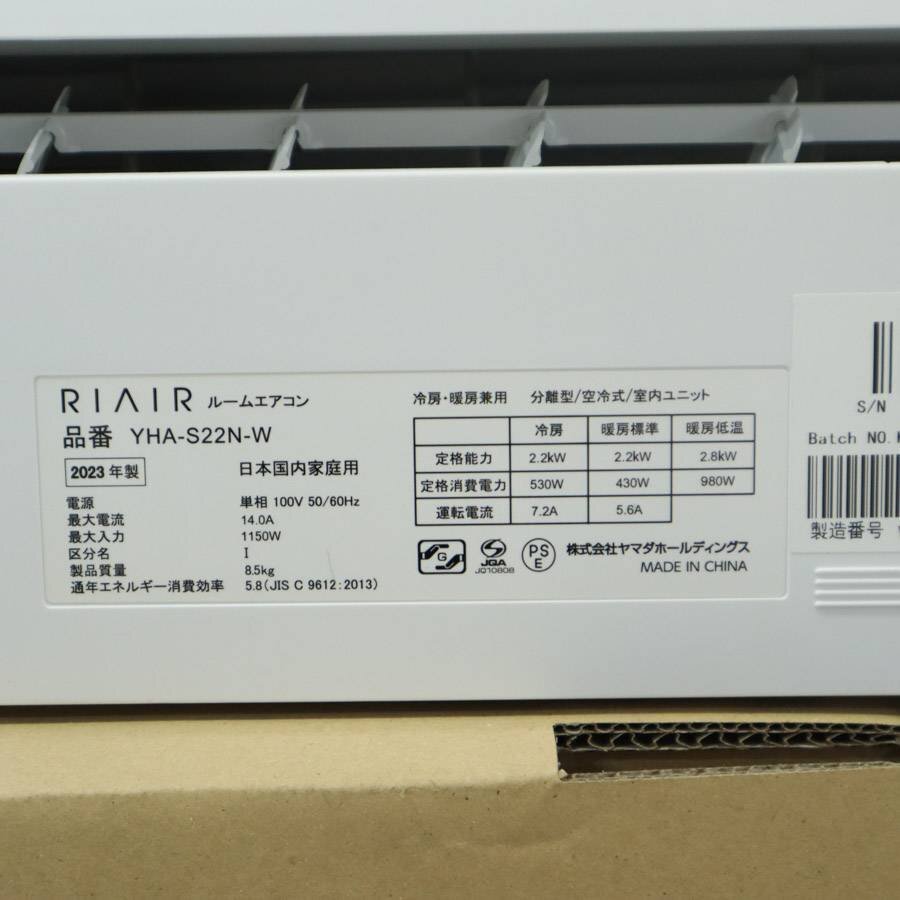 メーカー再生品 23年製 RIAIR ヤマダ電機 2.2kw 6畳 エアコン 室内機YHA-S22N-W 室外機YHX-S22N□236h19
