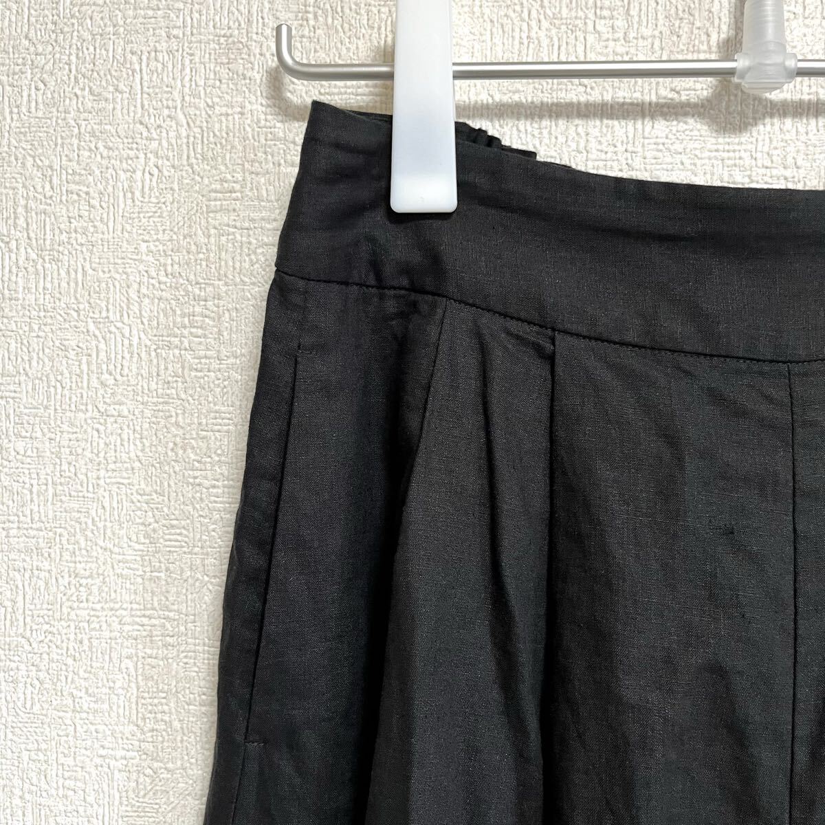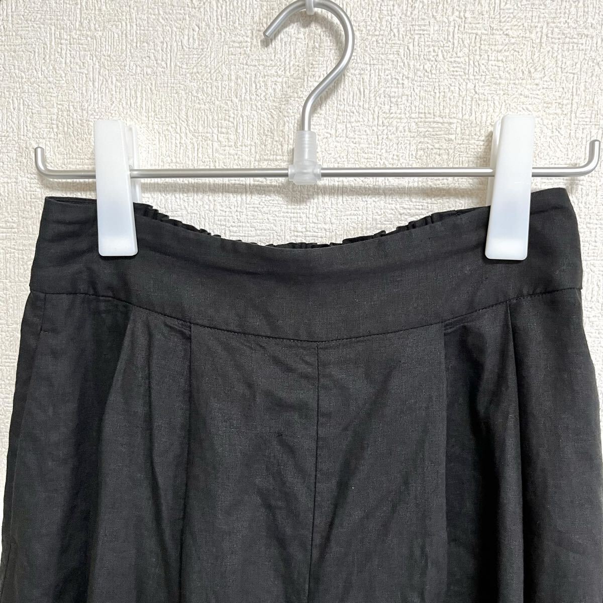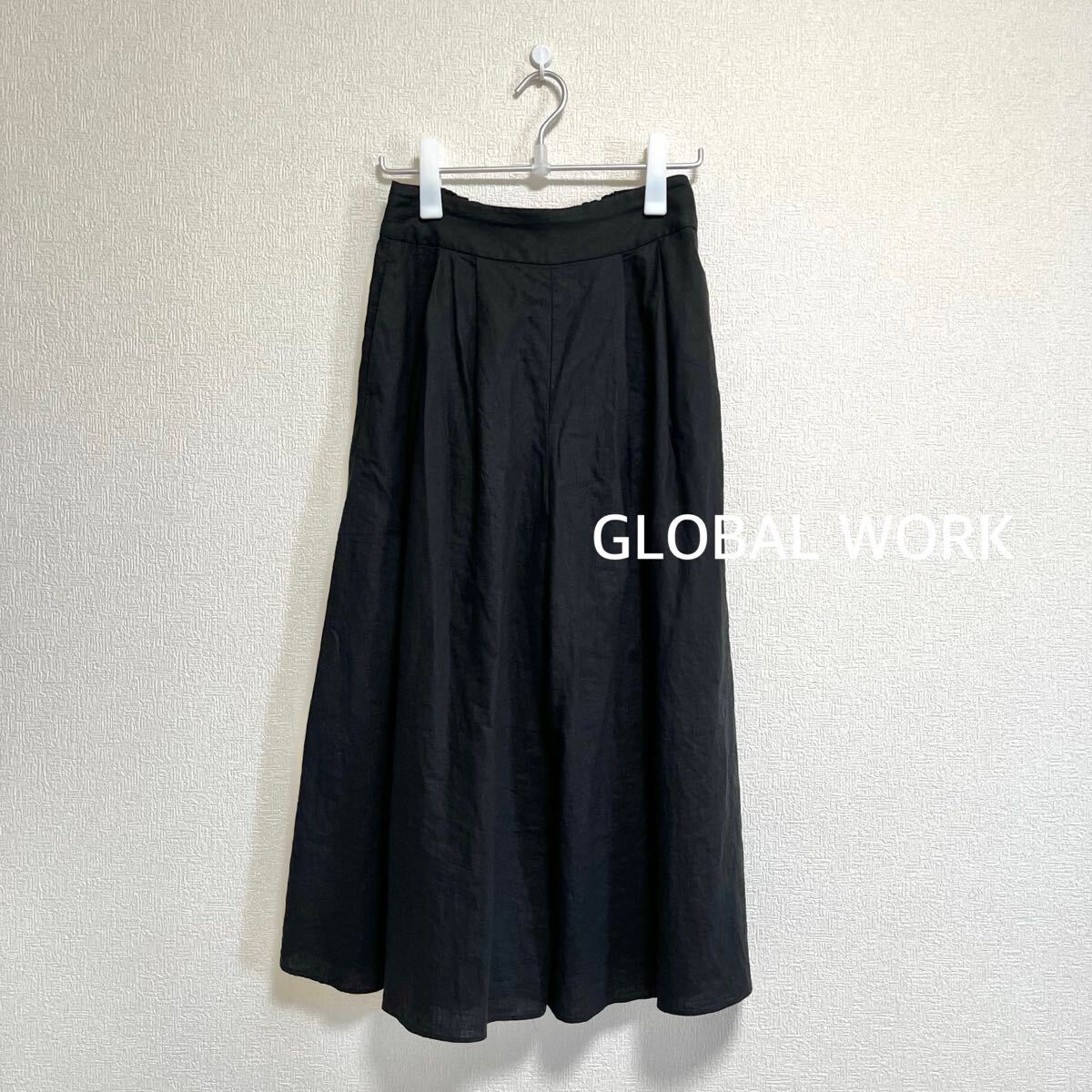GLOBAL WORK グローバルワーク|リネン混タックフレアワイドパンツ ブラック M|タック入り 麻混 スカート風 ゆるっとシルエット