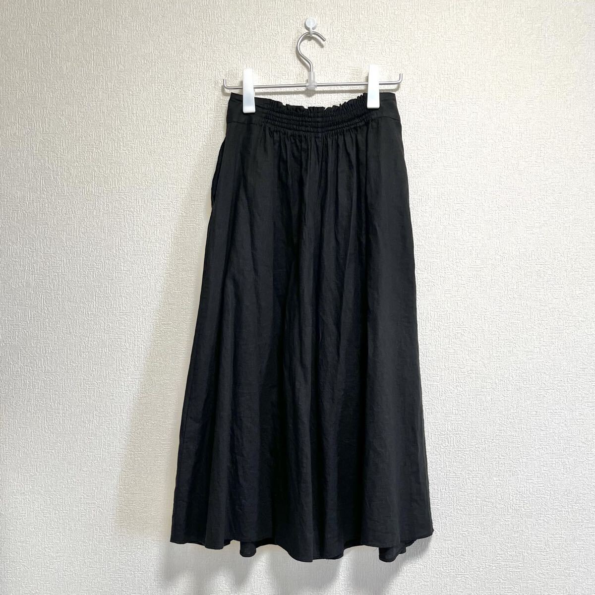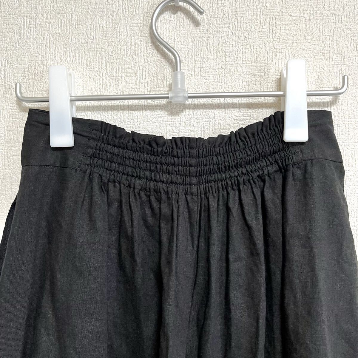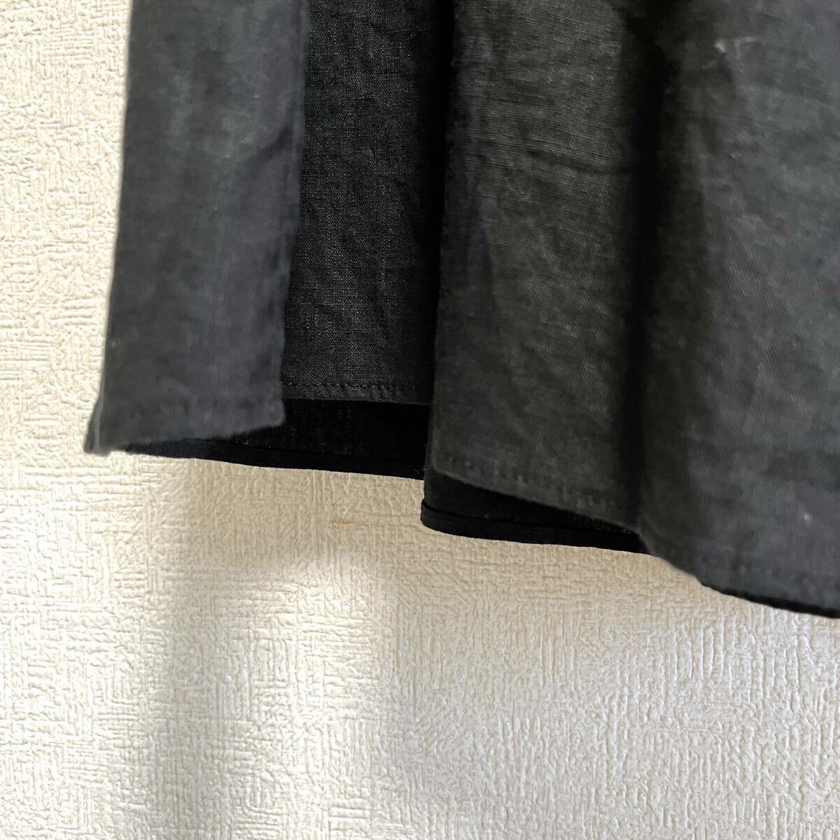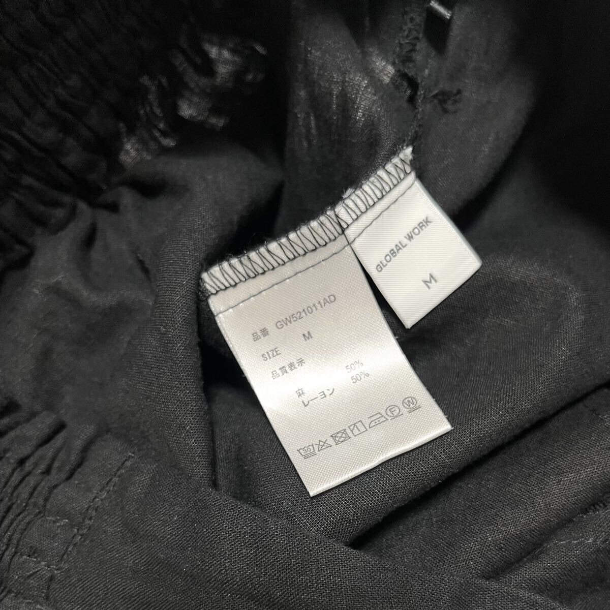 GLOBAL WORK グローバルワーク|リネン混タックフレアワイドパンツ ブラック M|タック入り 麻混 スカート風 ゆるっとシルエット
