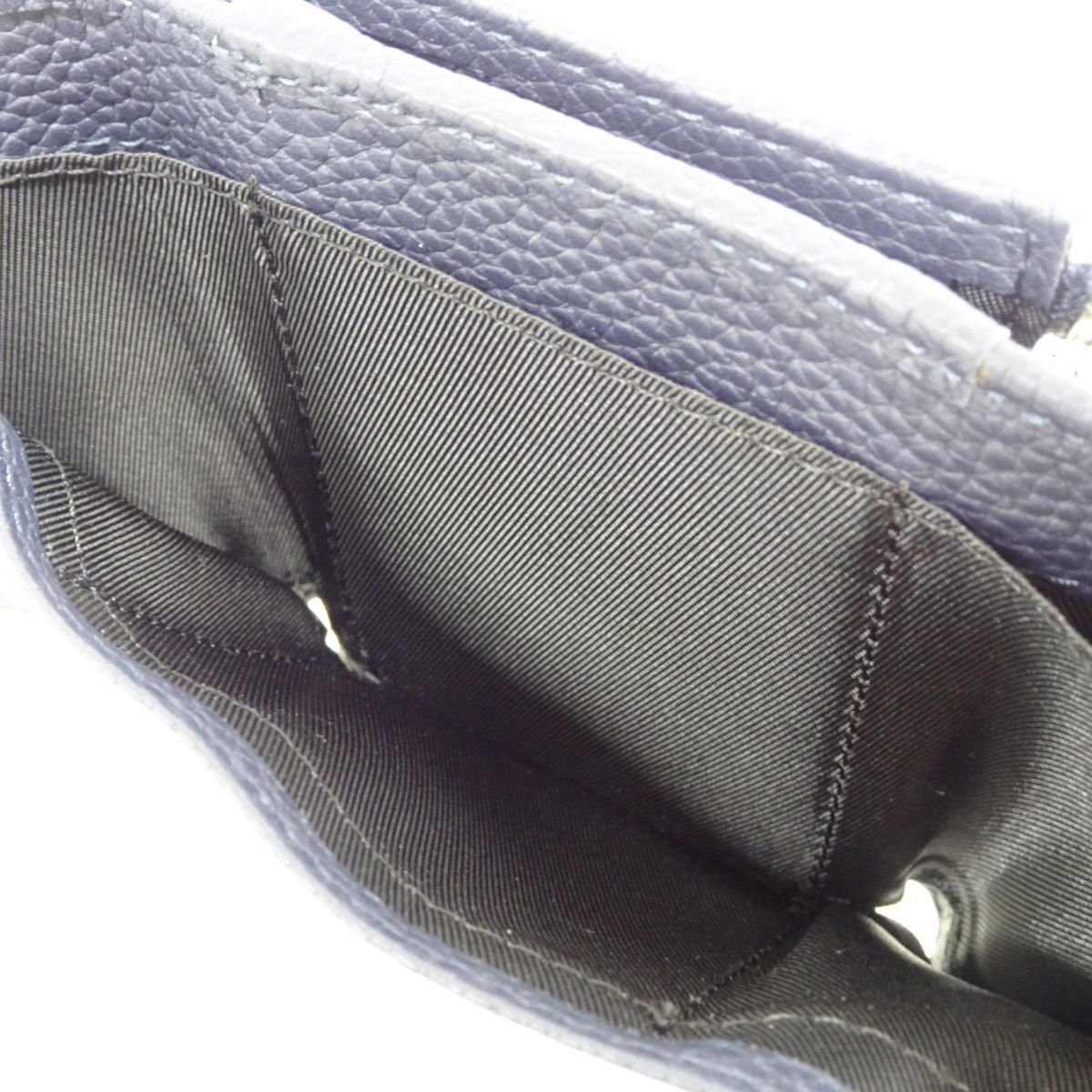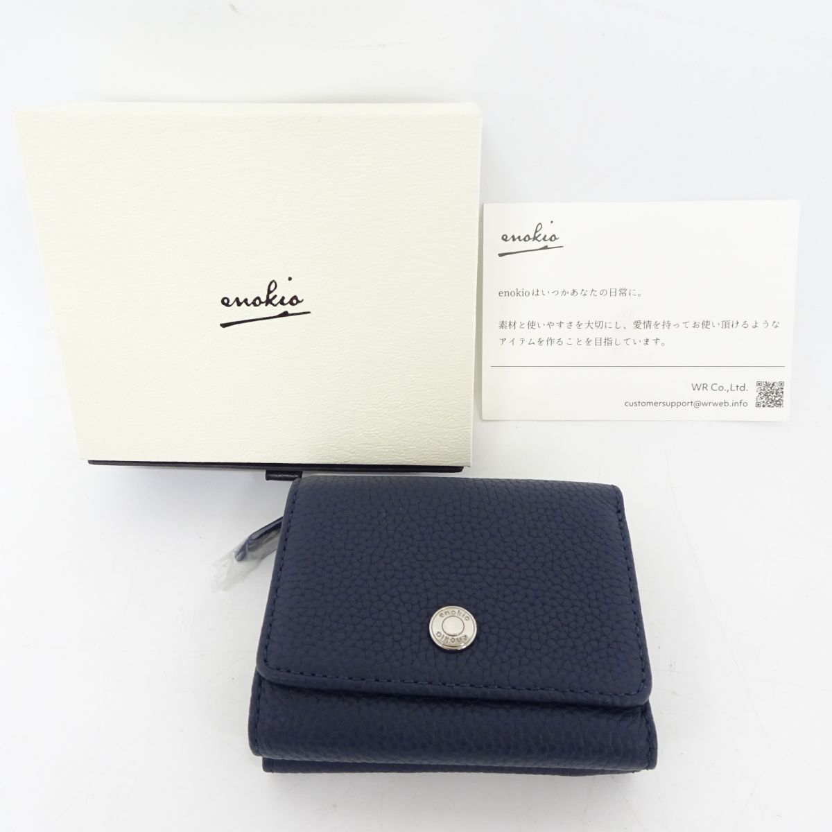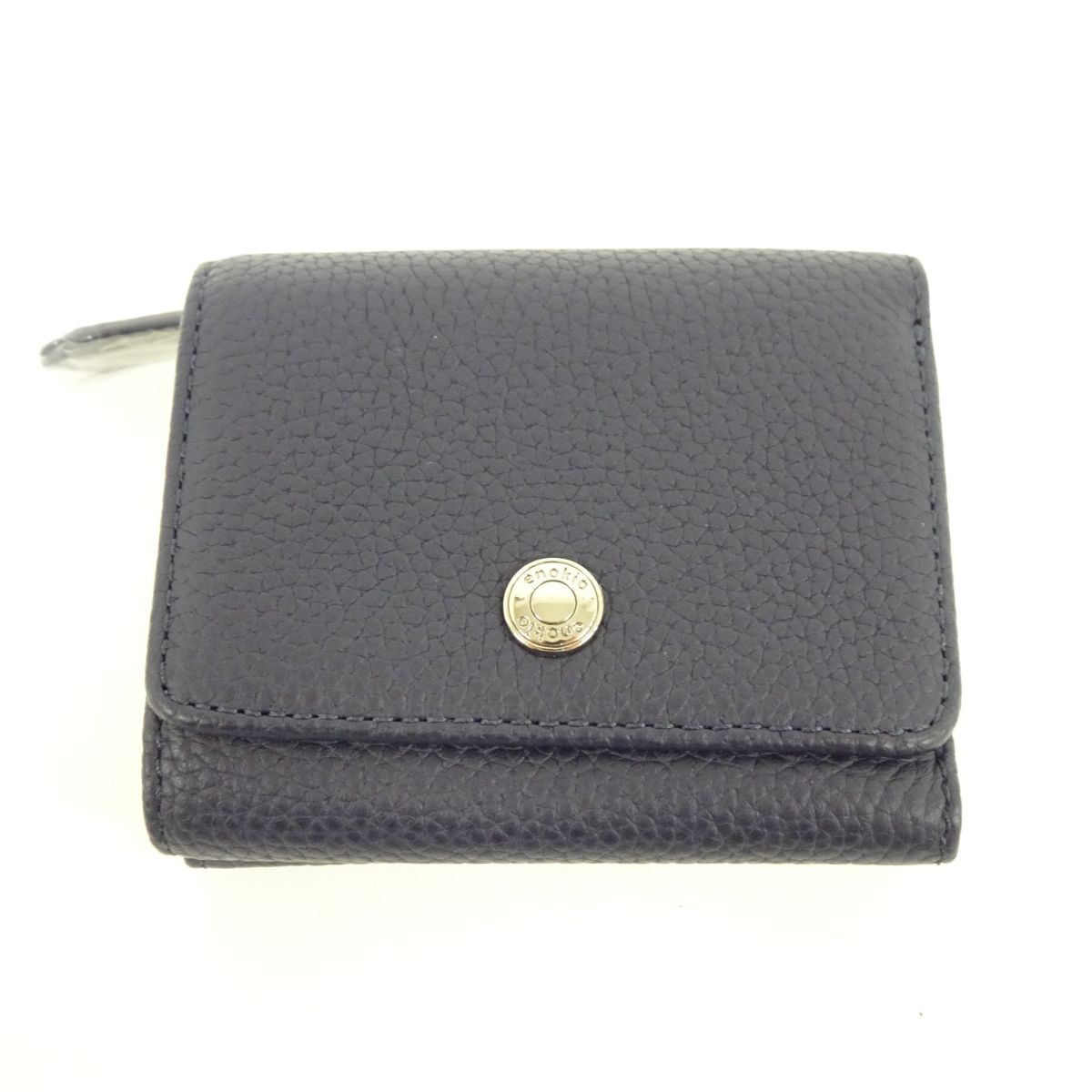 ■tyom 7108-5 109 未使用品 enokio 本革 レディース 三つ折り財布 ネイビー 紺 箱入り スキミング防止 シュリンクレザー ミニウォレット
