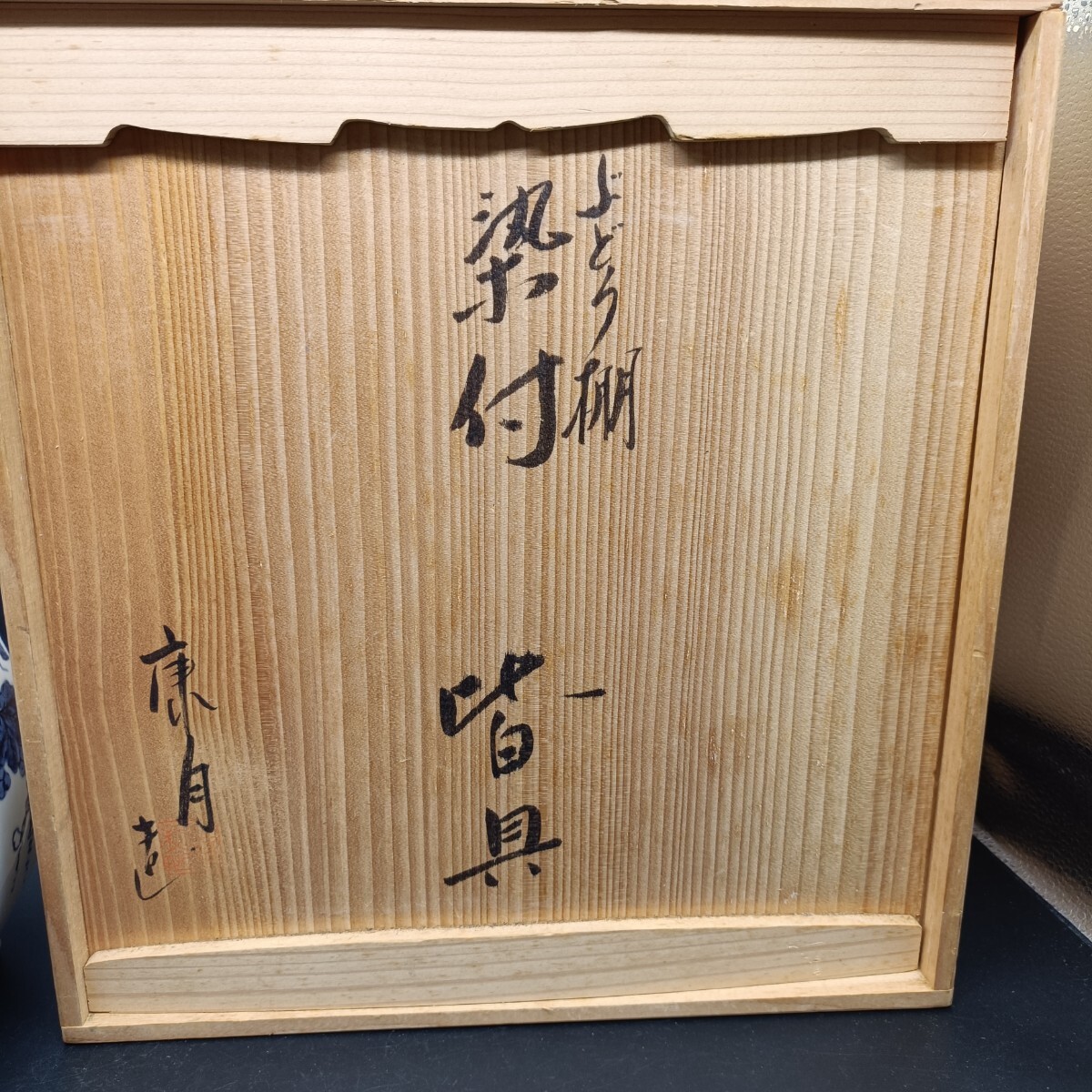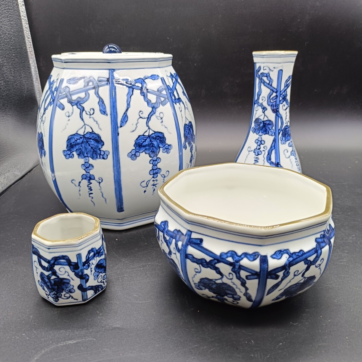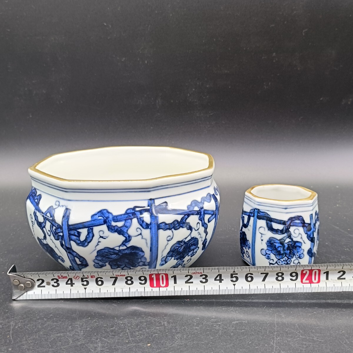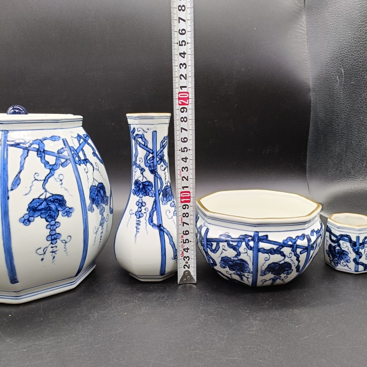 皆具 ぶどう棚 染付 鈴木康月 康月 水指 建水 蓋置 杓立 葡萄棚 茶道具 ウ6