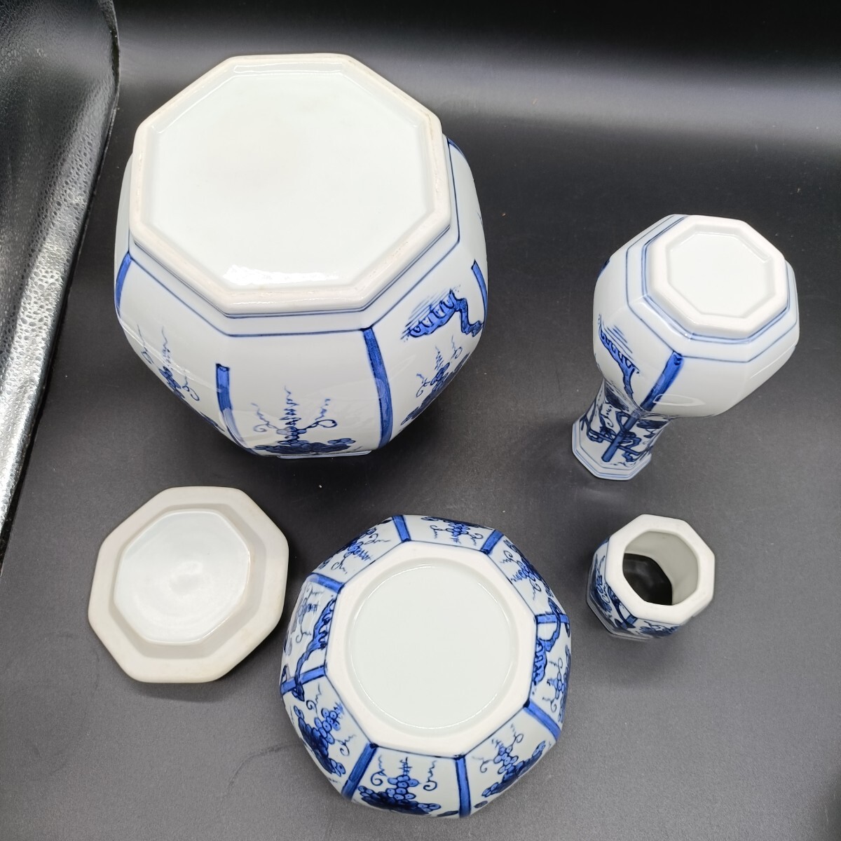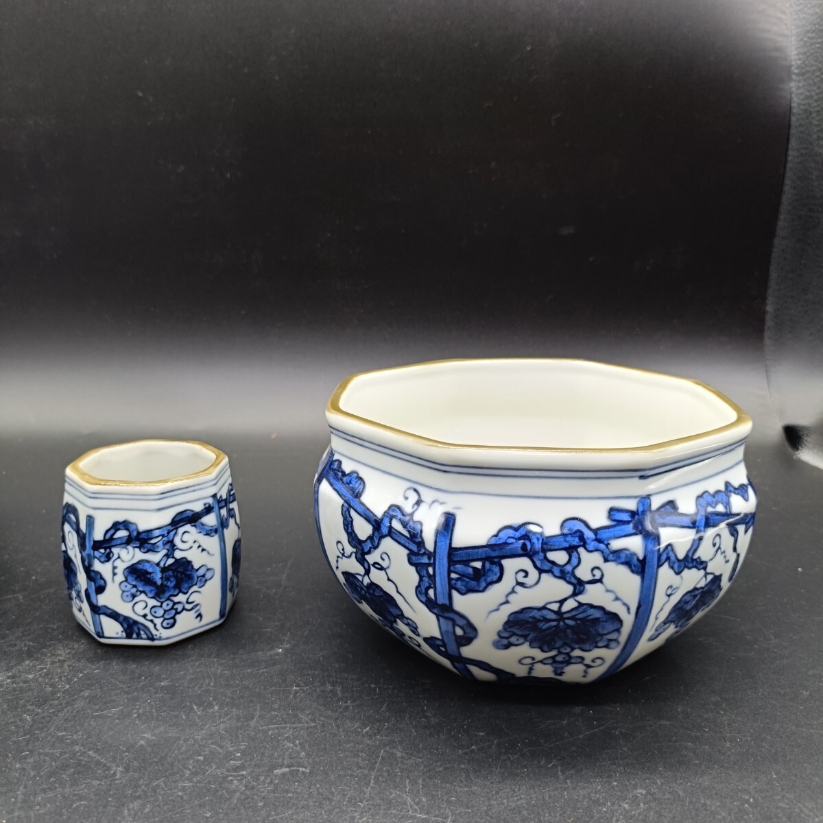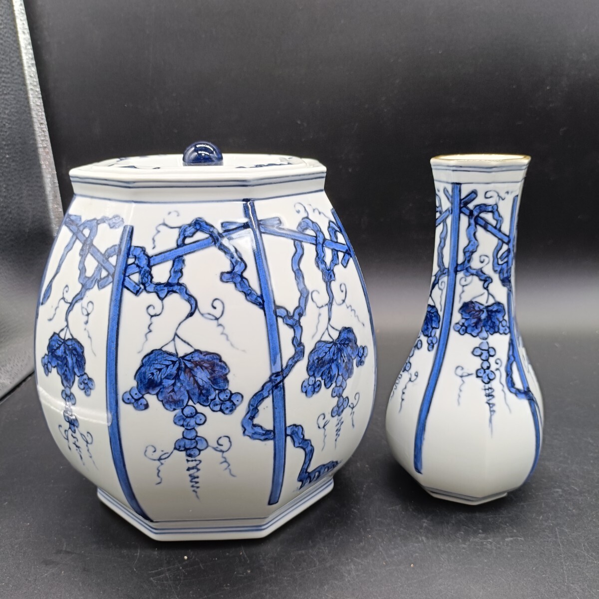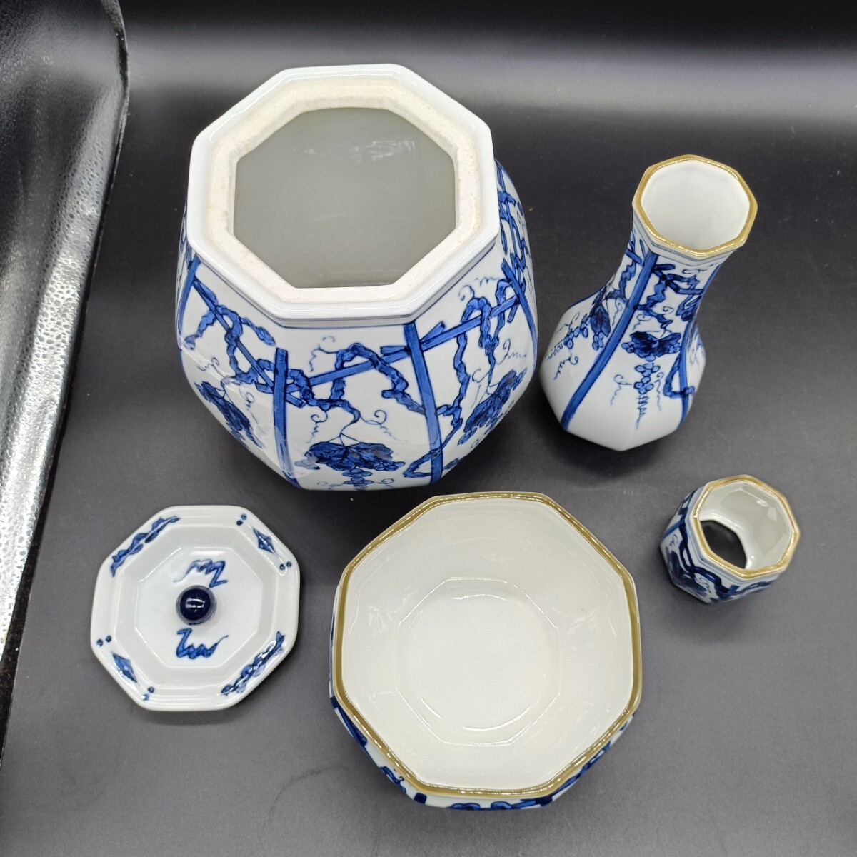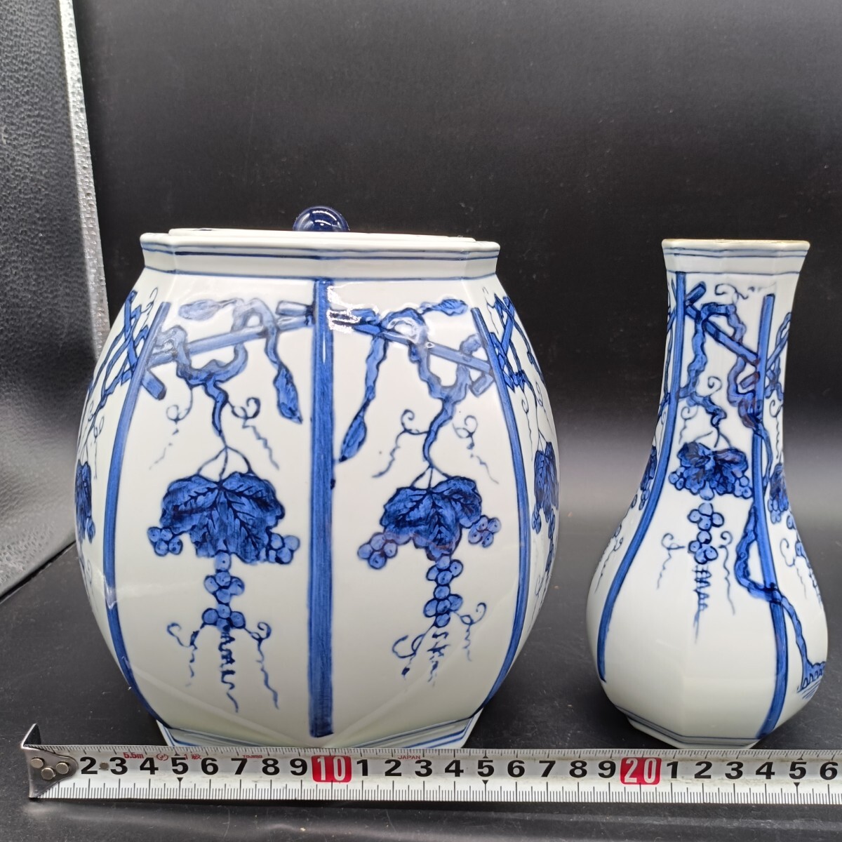 皆具 ぶどう棚 染付 鈴木康月 康月 水指 建水 蓋置 杓立 葡萄棚 茶道具 ウ6