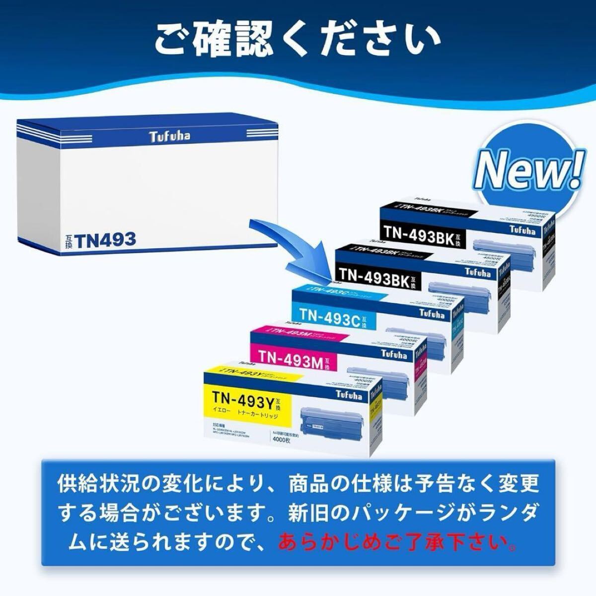 【製品容量】ブラック( TN493BK )は約3,000枚が印刷可能、 カラー( TN493C TN493M TN493Y )は約2,300枚が印刷可能 *A4用紙に5%密度で印字した場合の参考値。