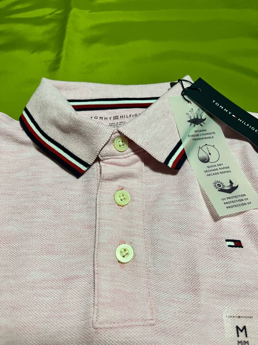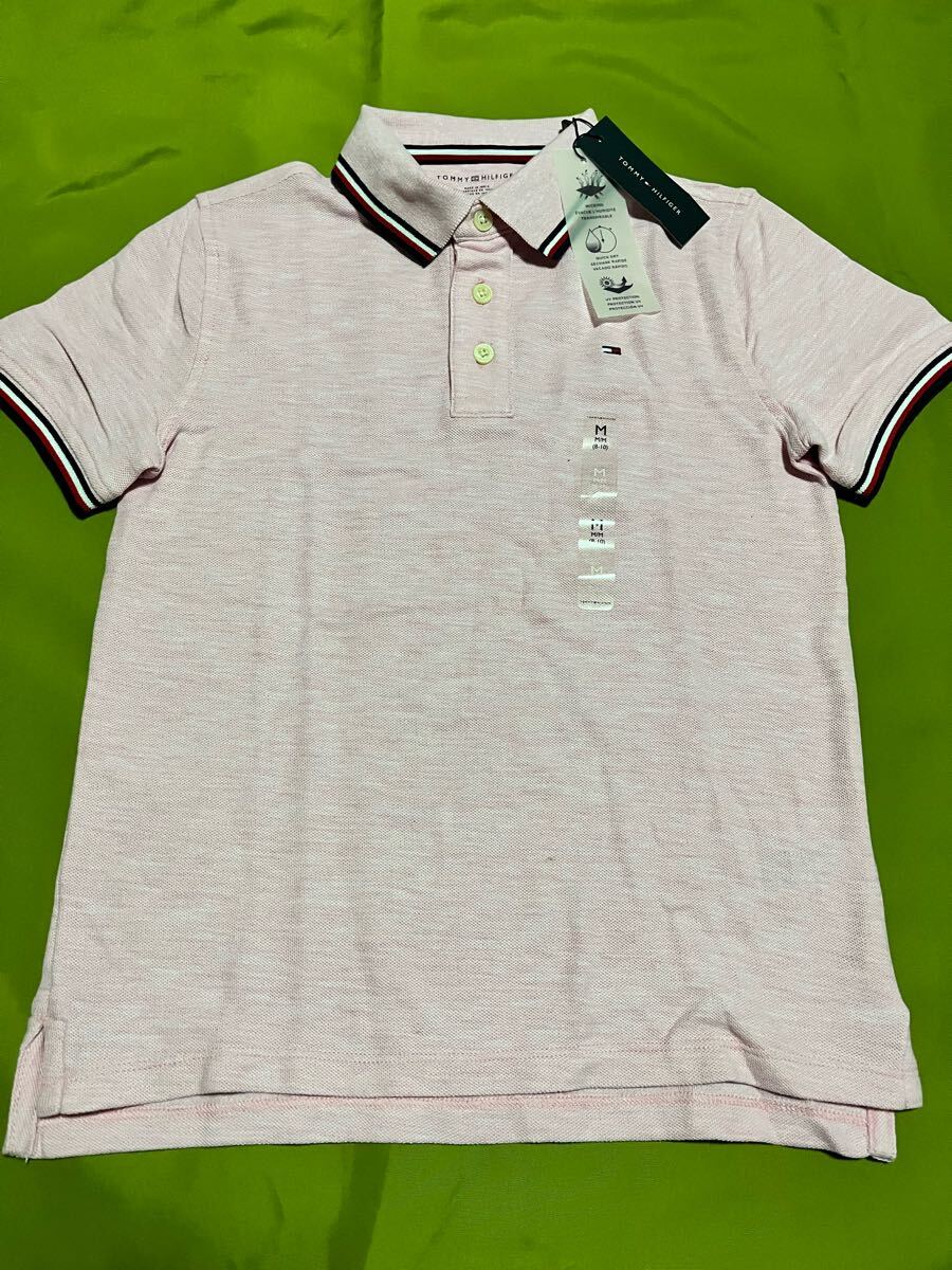 新品タグ付 トミーヒルフィガー 半袖ポロシャツ。サイズ:M(8~10)。海外のトミー直営店での購入です。海外ボーイズサイズの8歳~10歳用です。日本サイズより少し大きめだと思います。実寸サイズを参考になさってくださいね。ベビーピンクがお洒落なデザインです。