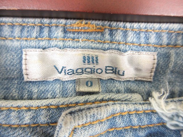 ビアッジョブルー Viaggio Blu デニム パンツ ボトムス ストレート ロング ダメージ 無地 水色 サイズ0 QQQ レディース