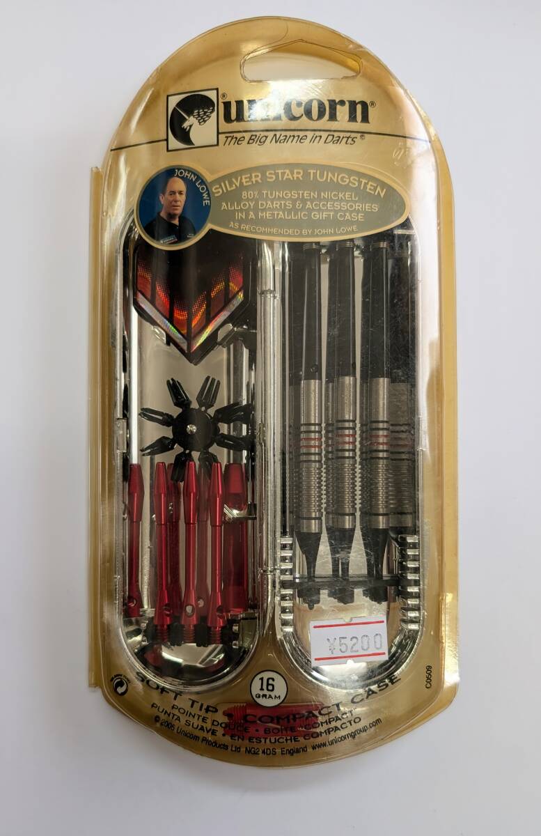 UNICORN ダーツ矢です。JOHN LOWEの写真付きです。 80%タングステン、ニッケル合金製ダーツとアクセサリー金属製ギフトケース入りです。 御覧いただきありがとうございます。 NC、NRでよろしくお願いします。