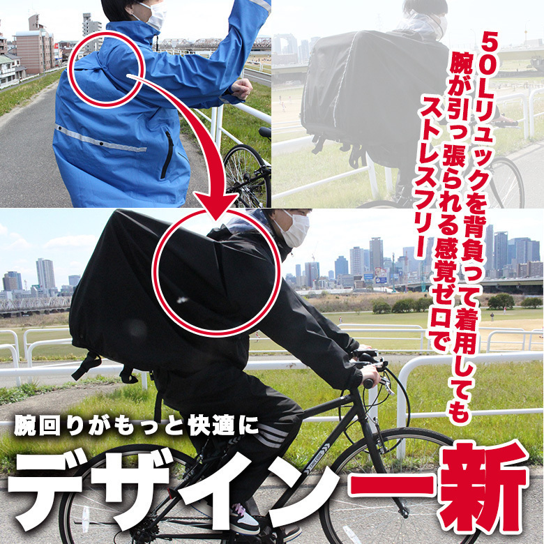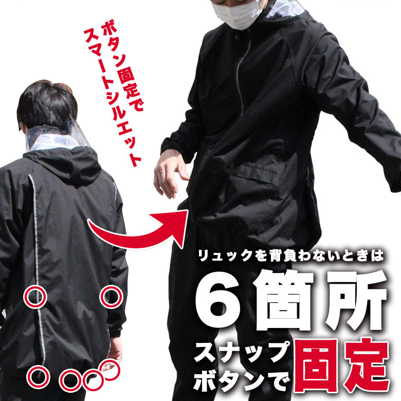 40L~の大きなリュックも背負ったまま着用OK!バックパックユーザーにおすすめの最新レインウェア。