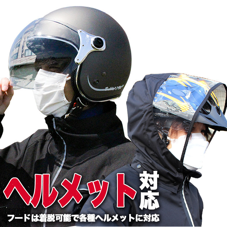 ・自転車用ヘルメット対応フード付き(取り外し/調節可能)で、通勤通学時にも便利。