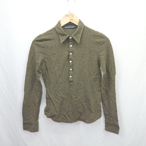 ◇ ⊇ RALPH LAUREN ラルフローレン コットン100% ワンポイント 長袖 ポロシャツ サイズM カーキ系 レディース E