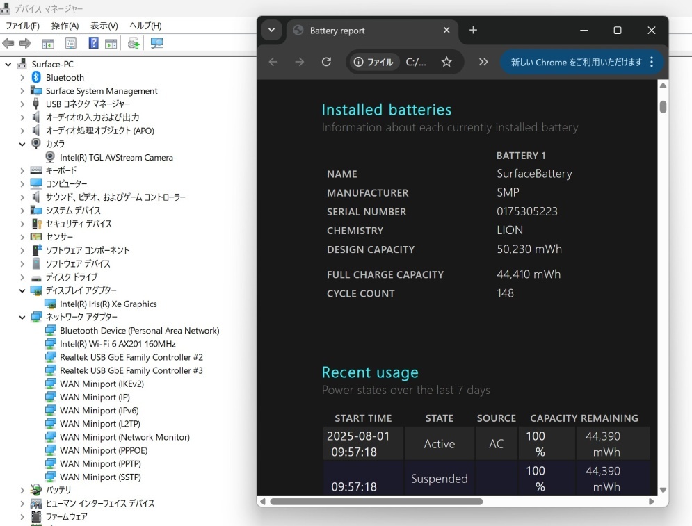 バッテリー | 4時間半位も使用可能と表示されている。 バッテリーは消耗品の為、動作補償外となります。 |