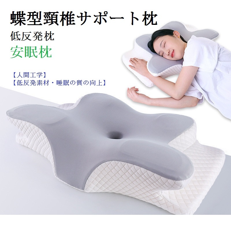 枕 マクラ 首こり 首枕 ピロー 低反発枕 安眠枕 ストレートネック 頸椎サポート 革新デザイン 蝶型頸椎サポート枕 お祝い プレゼント