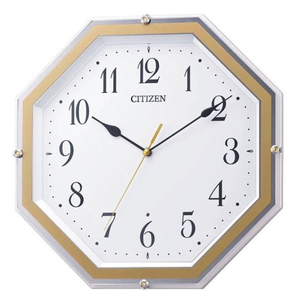 【新品・保証付/即決】 シチズン リズム時計 電波時計 エレガント ゴールド 眠る秒針 連続秒針 八角形 8MY544-003 白 掛け時計 R50806-1SG