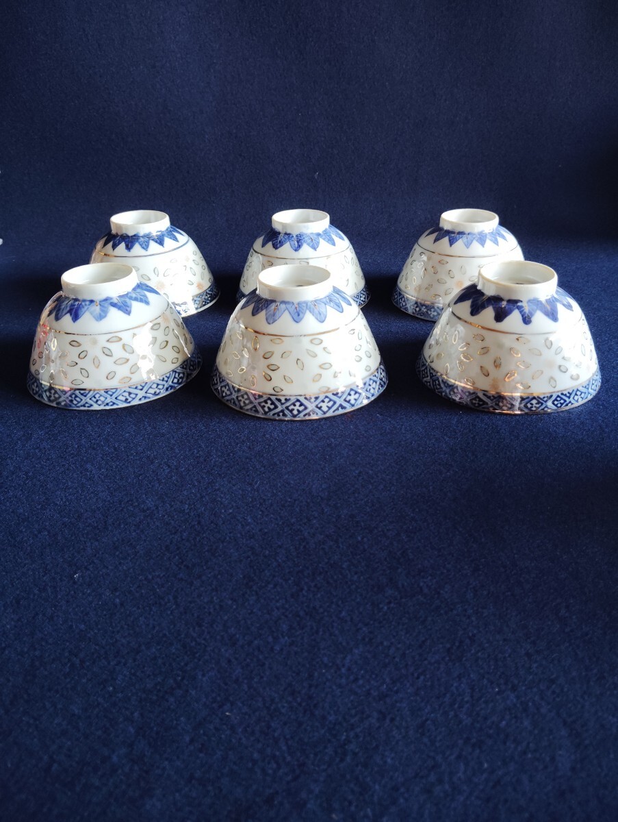商品名 : 中国美術 清代螢手 茶碗 茶器 染付 茶道具 煎茶道具 金彩 煎茶碗 六客