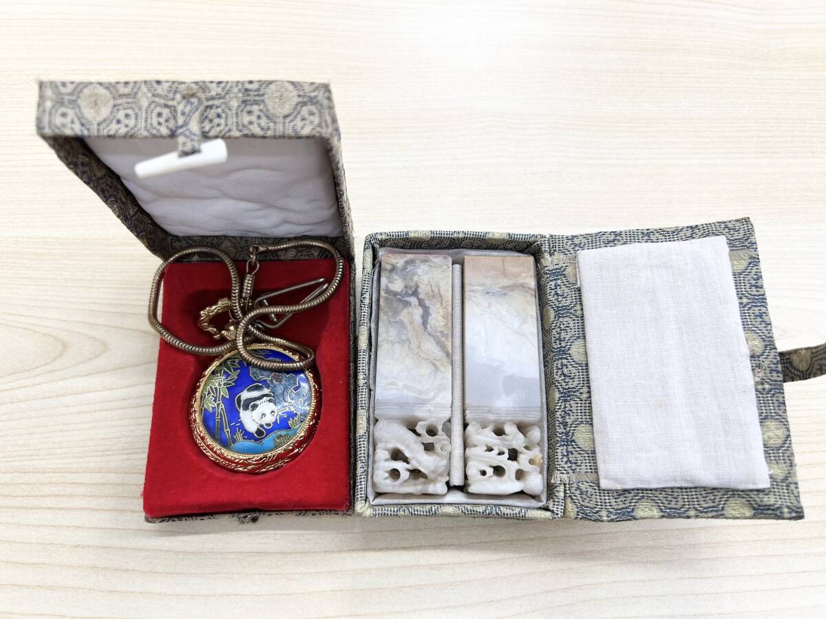 IY84176D 中国雑貨まとめ SHOUXING 懐中時計 不動 パンダ 中国武 詳細不明 印鑑? お土産 ジャンク品