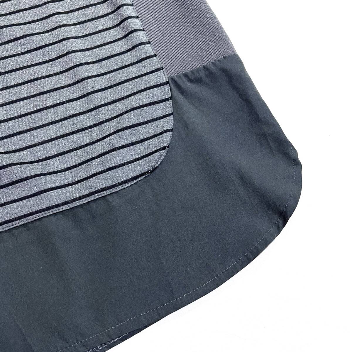 希少デザイン 異素材MIX長袖ボーダーカットソー ロンT 長袖シャツ ゆったり クルーネック 生地MIX つぎはぎ しっかり生地