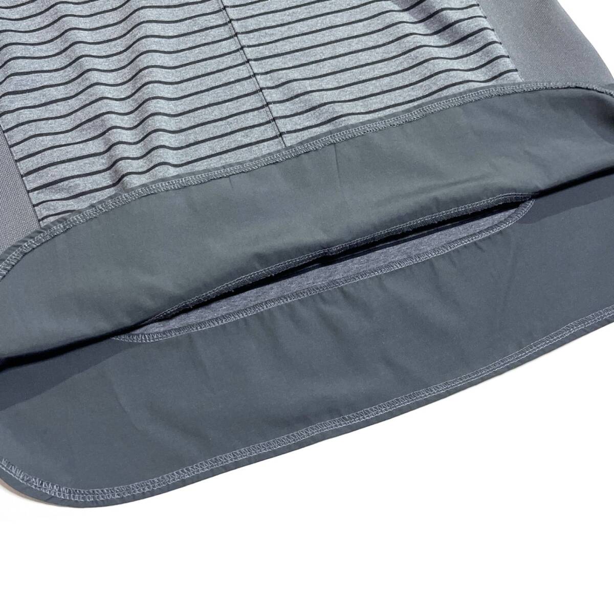 さらりとしたカットソー生地と異素材の切り替えが目を惹く、遊び心あるデザインです。クルーネックで首元はすっきり、ゆったりとしたシルエットで体型カバーにも◎。