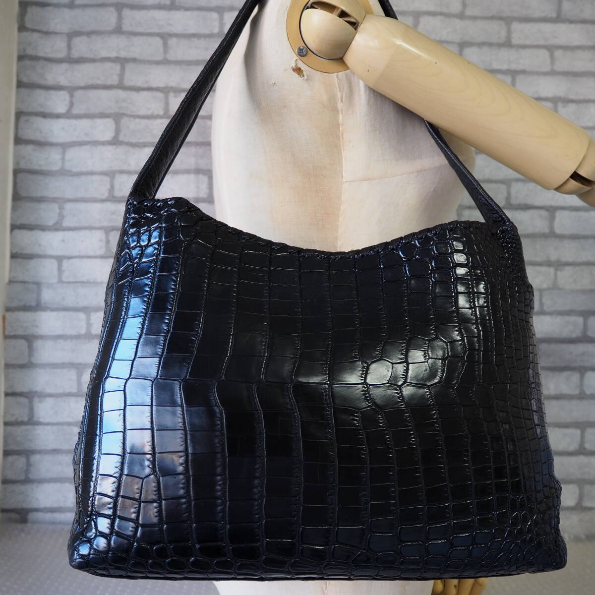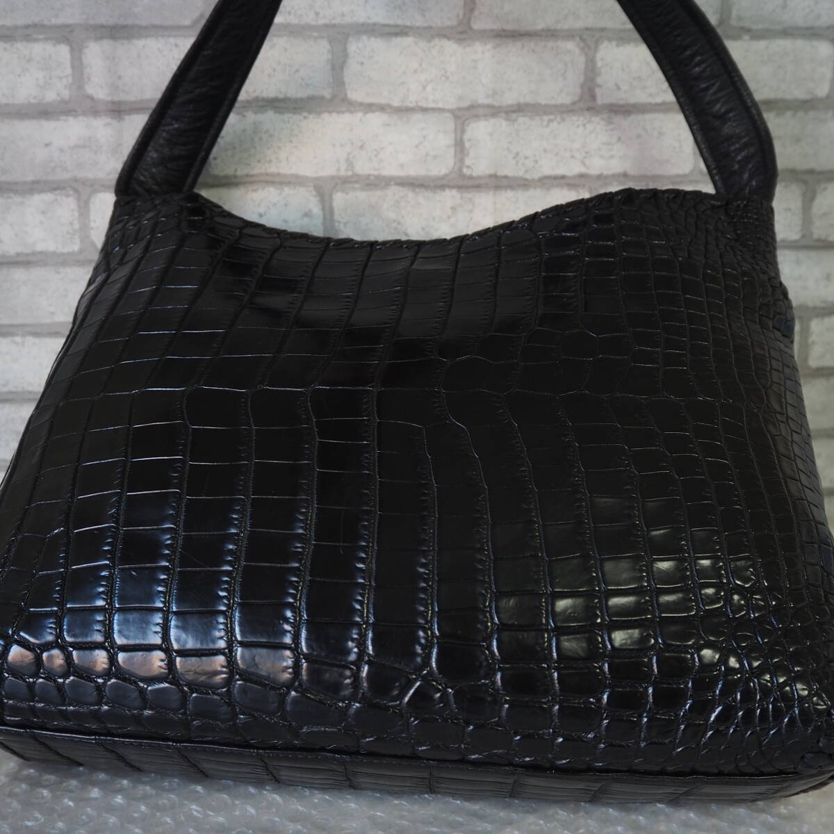 IBIZAのマットクロコダイルを使ったレザーショルダーバッグとなります。