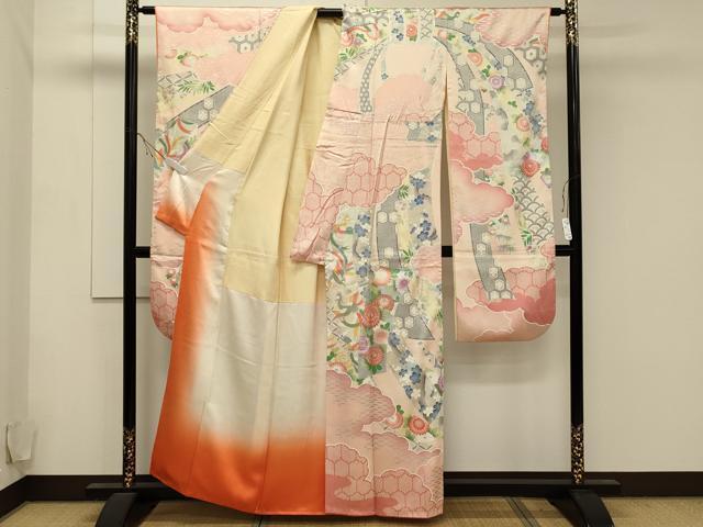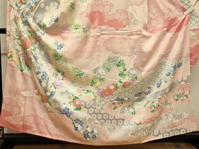 | 身丈 158.5cm(肩から) 裄丈 64.5cm 袖丈 106cm 縫込み 9.5cm 袖幅 33.5cm 前幅 24.5cm 後幅 30cm 着物縫いこみ 内揚げ 5.5cm 裄 お袖側 約3.5cm 身頃側 約2cm 《 サイズについてはこちら 》 |