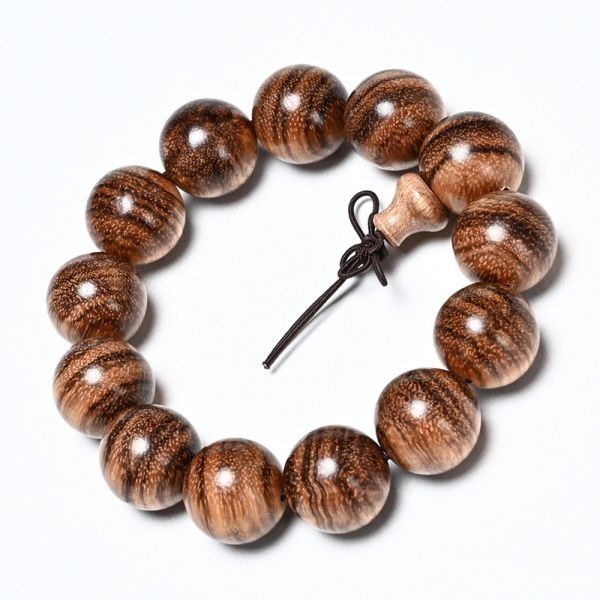 [EasternStar] 海外発送 ベトナム 沈香 虎紋 ブレスレット お守り 数珠 念珠 木珠 18mm 13玉 小孔