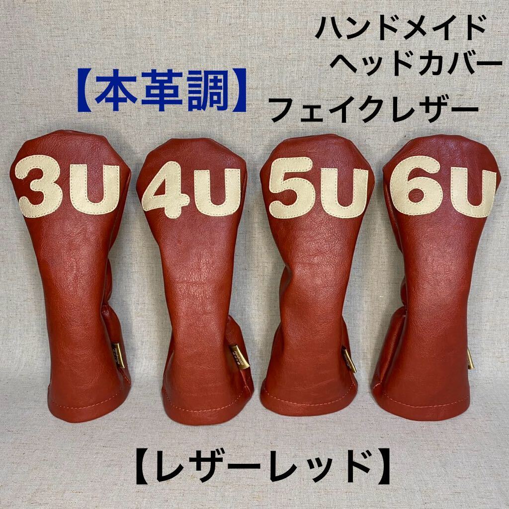 全国送料無料!バラ売り可!【本革調フェイクレザー/レザーレッド/3U/4U/5U/6U】ハンドメイド ヘッドカバー 合皮 ユーティリティ用 UT用