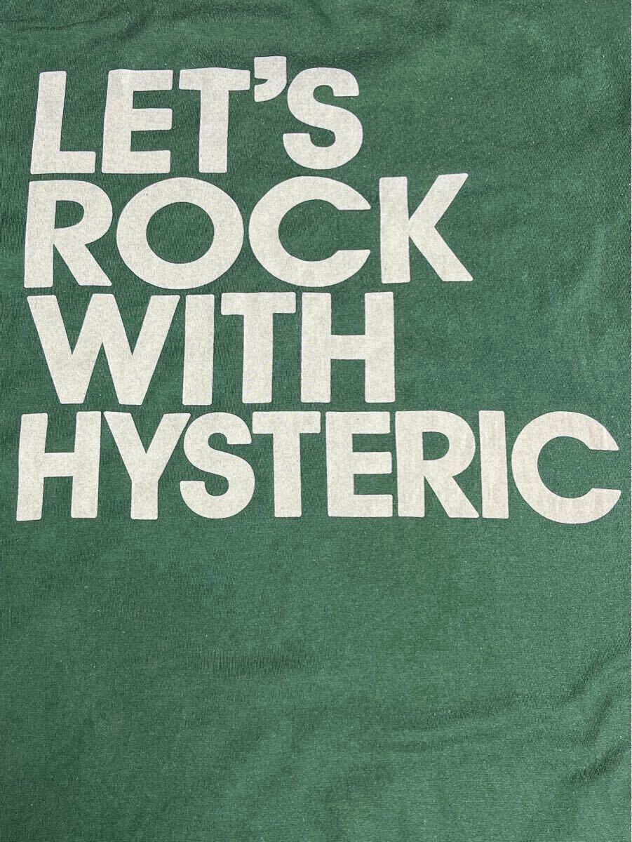バックは「HYSTERIC GLAMOUR」「LETS ROCK WITH HYSTERIC」インパクト大。色あせ毛羽立ち毛玉あり、ご了承された方のみ ご購入下さいますよう どうぞよろしくお願いいたします。
