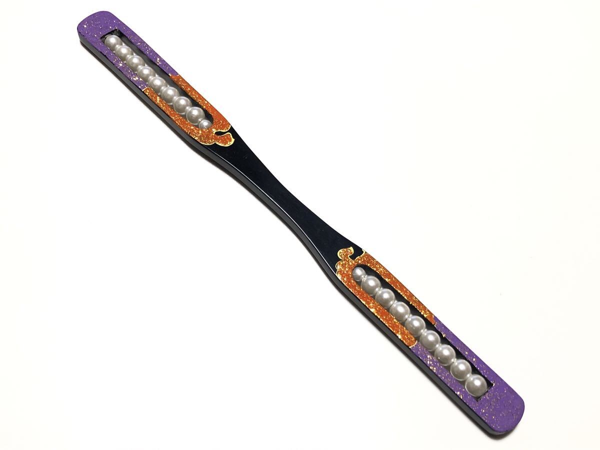 鼈甲風(樹脂)に仕上げ、フェイクパール、蒔絵を施した、デザイン笄です。
