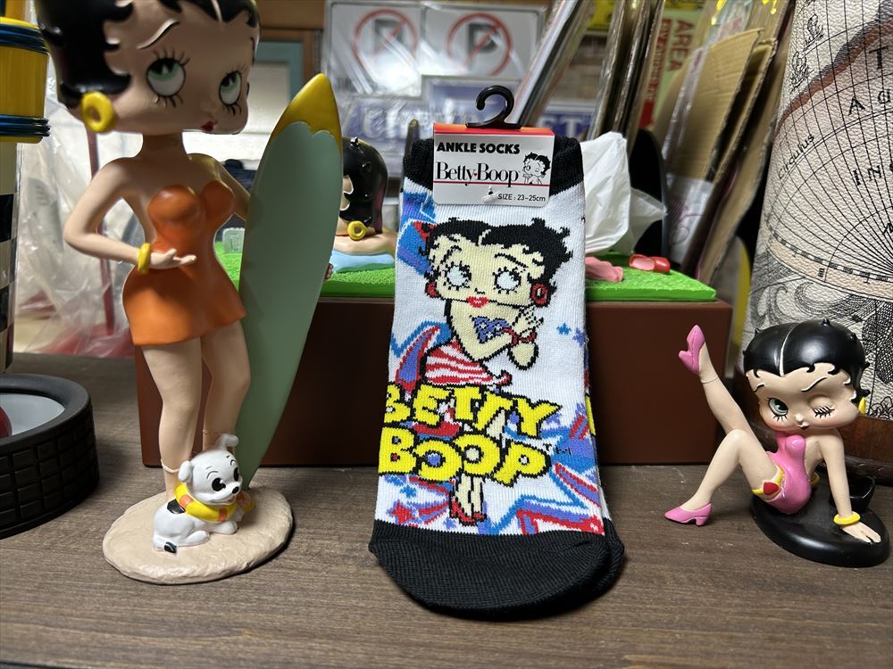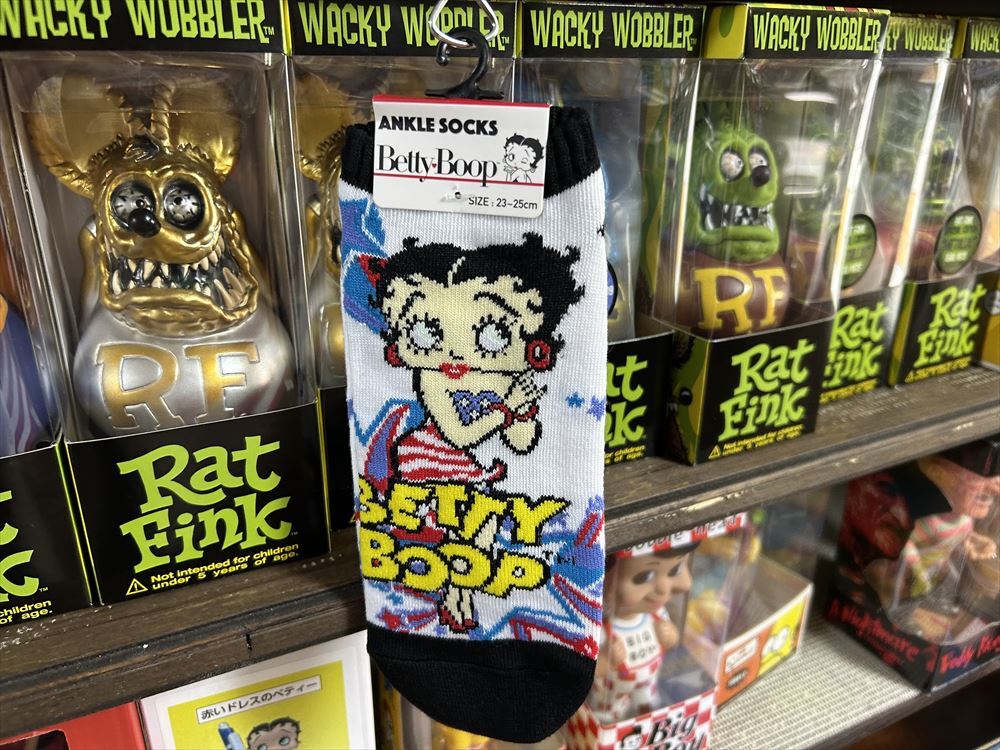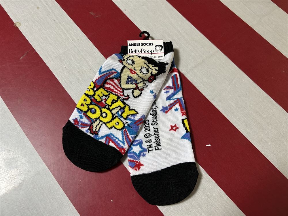 【214205】超人気のアメリカン雑貨のキャラクター!!!!ベティブープのアイテム レディースのアンクルソックスです。アンクルソックス・・くるぶしあたりまでの短めのソックス、正面にドーンとべティが描かれていて、靴を脱いだら目立つの間違い無し サイズ23~25cm 素材 ポリエステル,ポリウレタン
