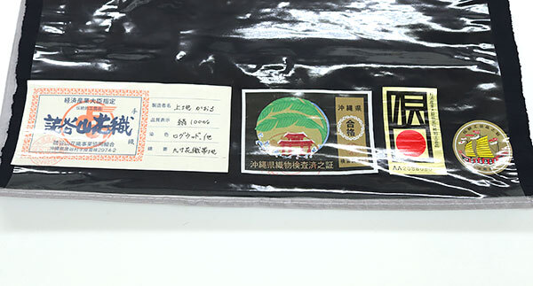 ◆読谷山花織事業協同組合手織の証、沖縄県織物検査済之証、沖縄県伝統工芸品之証、経済産業大臣指定伝統的工芸品