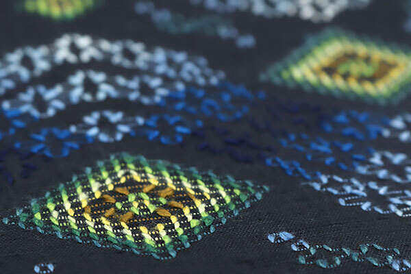 平面的な生地に浮き出させて柄を織り上げる技法は、細やかな刺繍のようにも見える繊細な魅力がある紋織で、大変人気がございます。