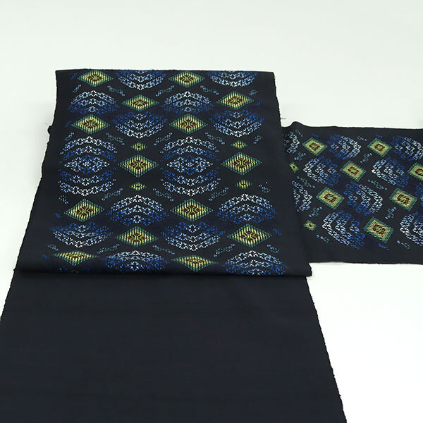 /Yuntanza Hanaori /Okinawa handwoven textile /Japanese woven obi /Handmade Nagoya obi /Traditional Japanese obi /Black obi/Wagara kimono belt /Japanese artisan craft /Kimono accessories /Rare Okinawan textile /Cultural heritage Japan /Handcrafted Japanese belt /Unique kimono obi /Ethical fashion Japan /Traditional Okinawa weaving /Vintage style obi