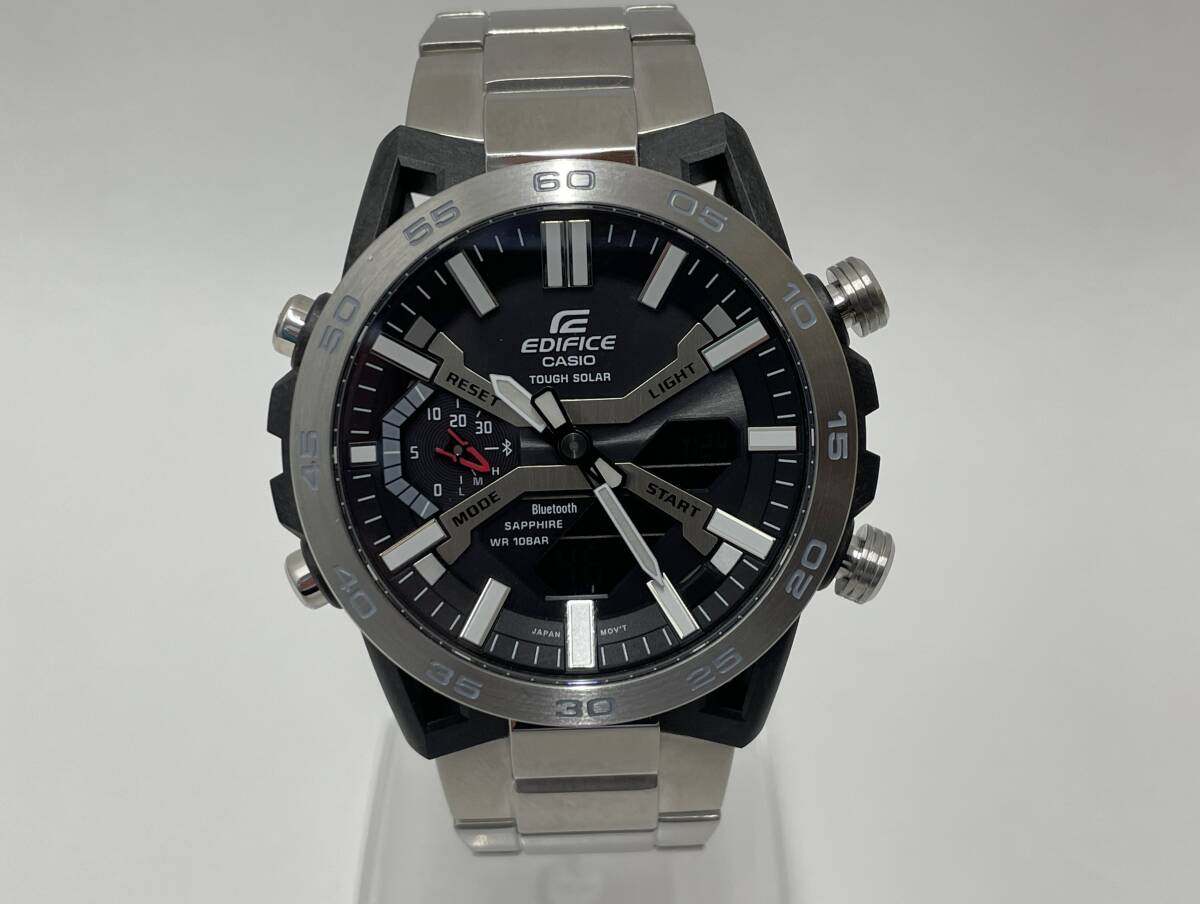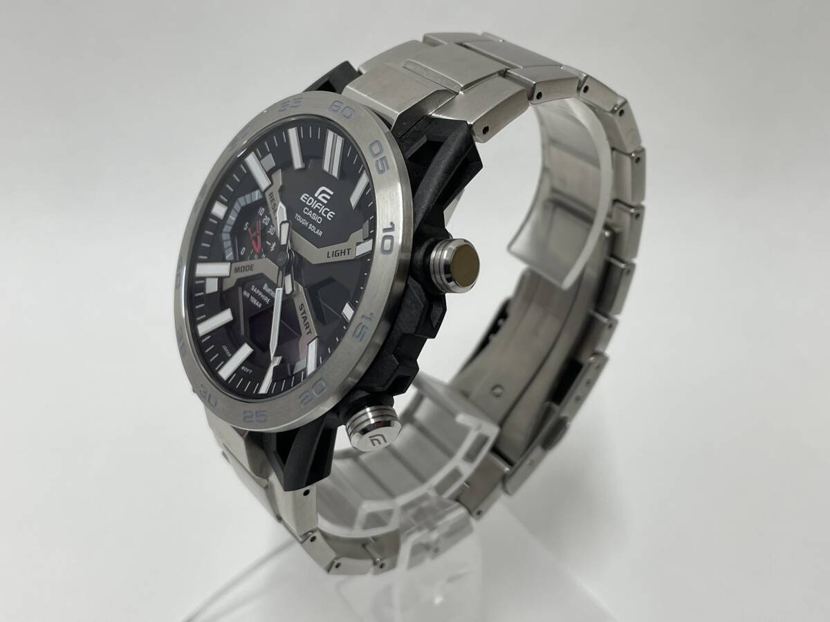 ・サスペンションアームデザインを採用したEDIFICEのデジタル・アナログコンビネーションモデル。