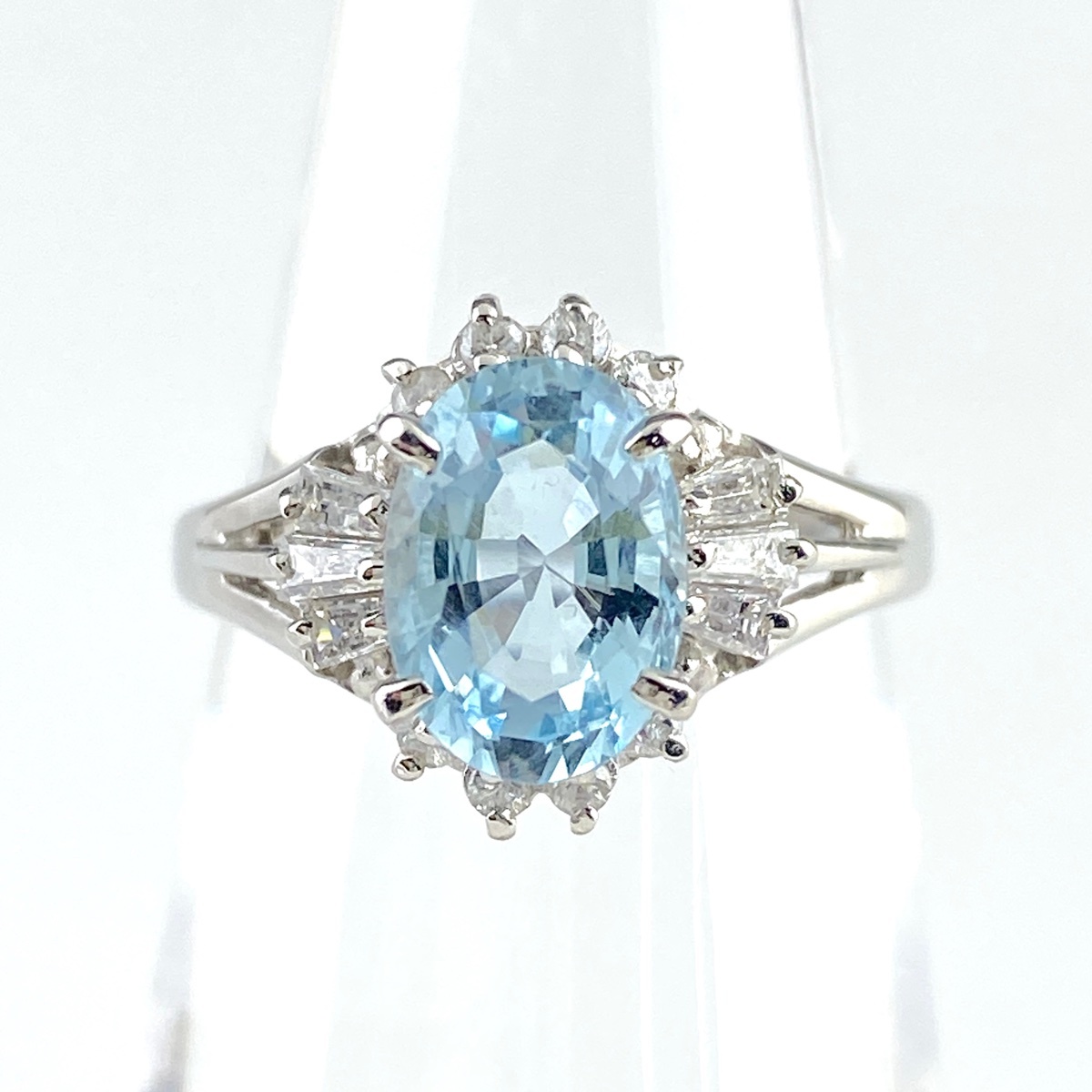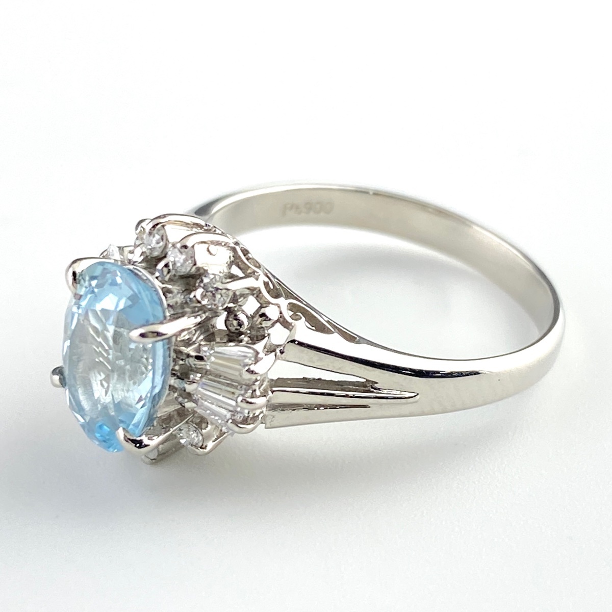 アクアマリン デザインリング プラチナ 指輪 メレダイヤ リング 11.5号 Pt900 アクアマリン ダイヤモンド レディース 【中古】 |