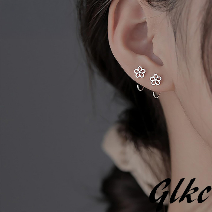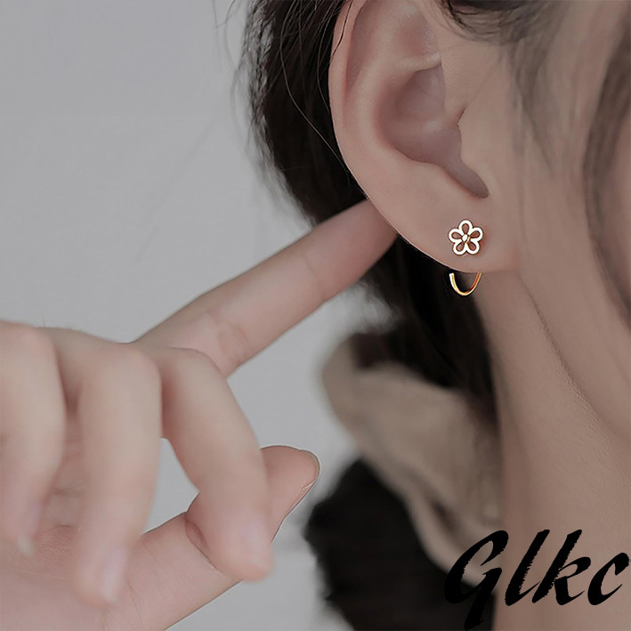 ・デザイン:透かし彫り花モチーフのフープピアス