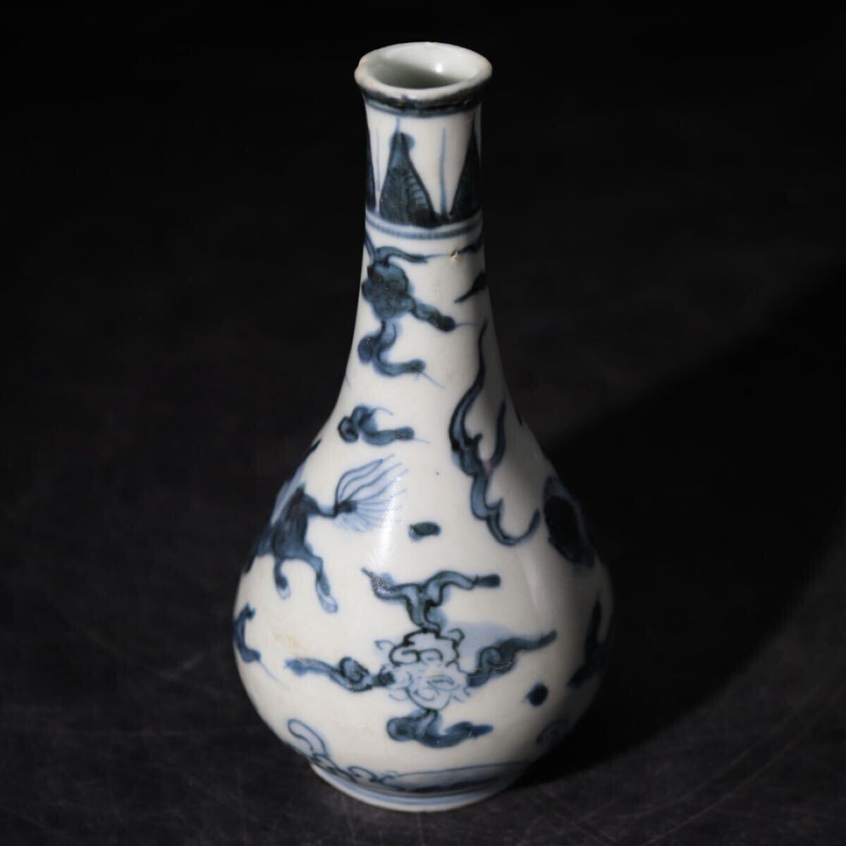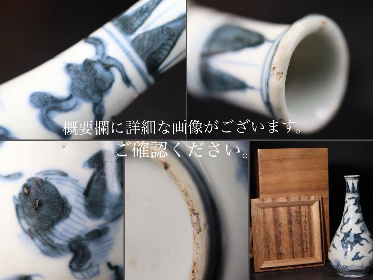 | 識箱 「 明末 州窯 染付 獅子 麒麟図 徳利 」 木箱付 / 明 古染付 煎茶道具 検索: 鵬雲斎 裏千家 .G2234 |