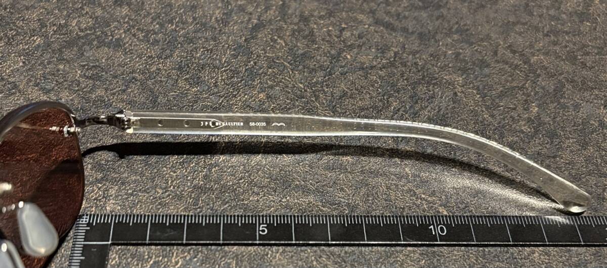 90sオールドJPG-GAULTIERサングラス銀メタル刻印フレーム クリアセル コンビ2ポイント スポーツ度無し赤レンズ90年代ゴルチェy2kビンテージ