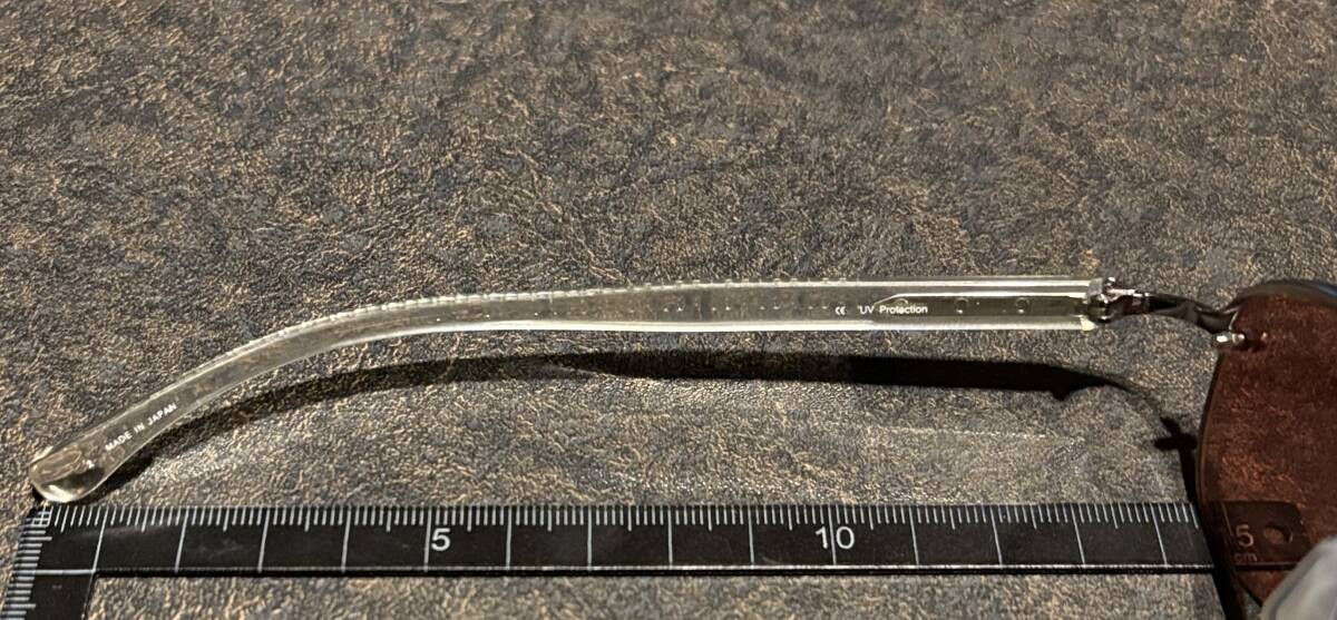 ・サイズ(直線実寸):フロント-約14cm ブリッジ-約1.8cm レンズ-約3.5×5.5cm(縦×横フレーム含まず最長部で計測)