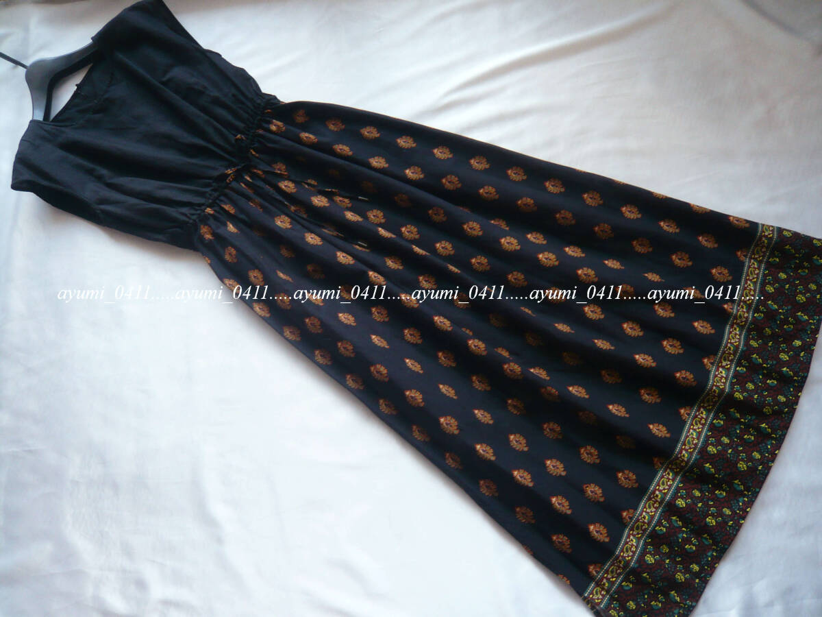URBAN RESEARCH ROSSOの黒・ペイズリー柄 リネンブレンド 切替ロングワンピースです♪